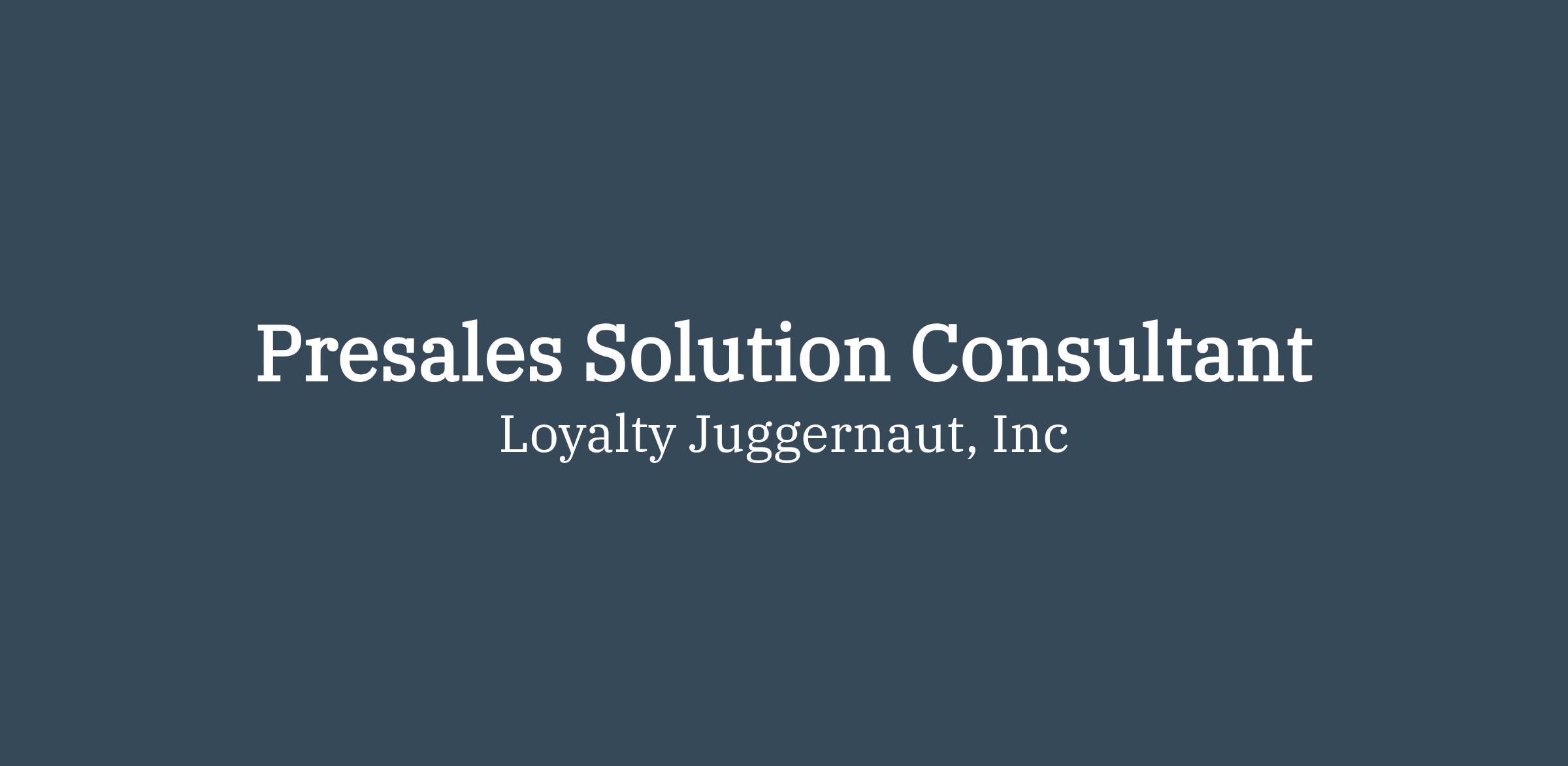 This is an ideal role for someone with 3+ years of experience in solution presales who has strong communication skills, high energy, and a genuine hunger to learn enterprise software and the loyalty space.