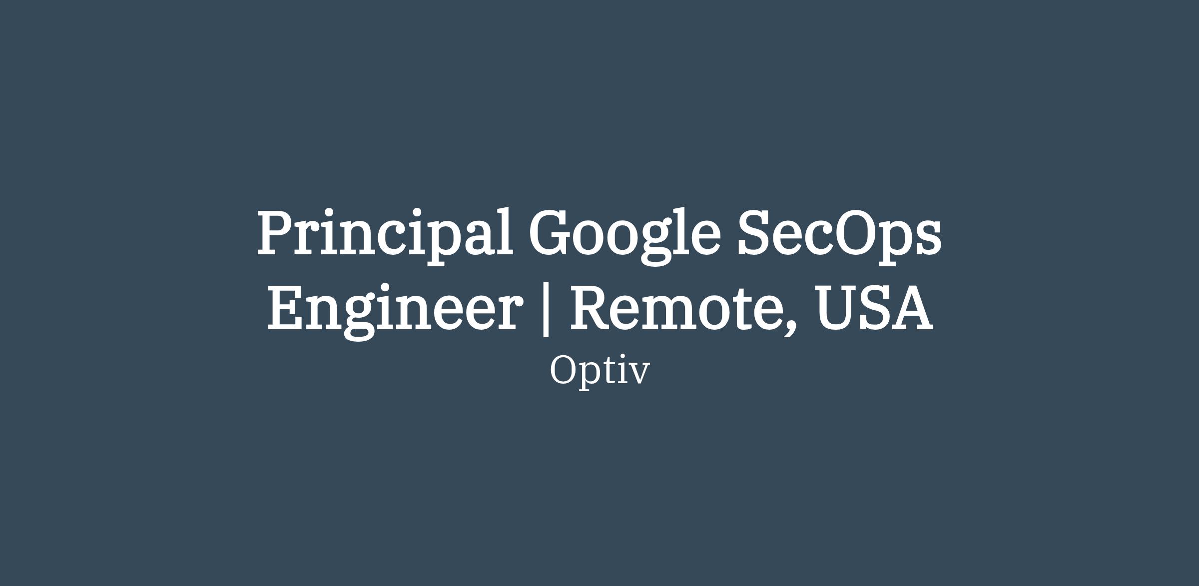 Principal Google SecOps Engineer | Remote, USA