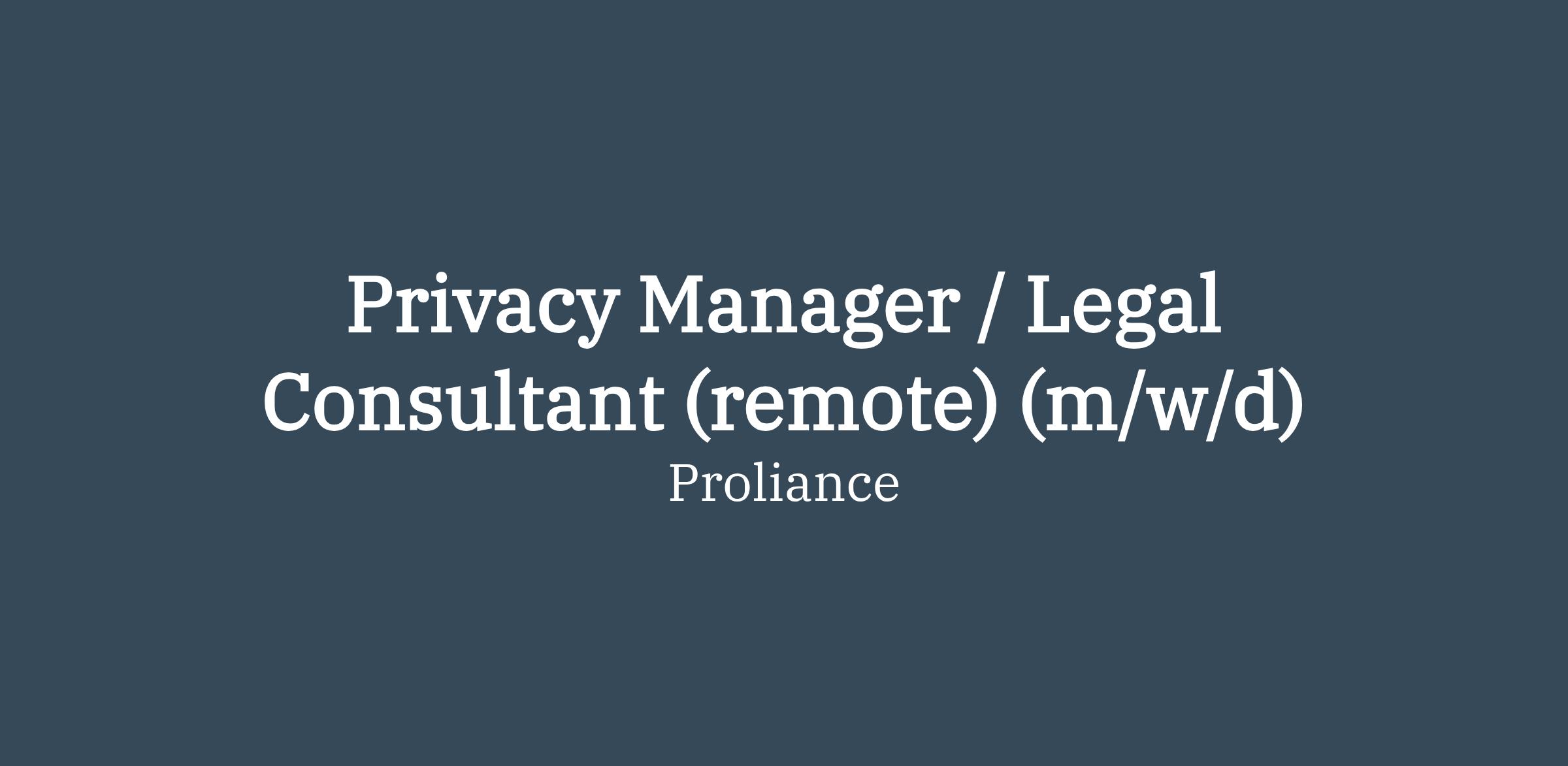 Privacy Manager / Legal Consultant (remote) (m/w/d)