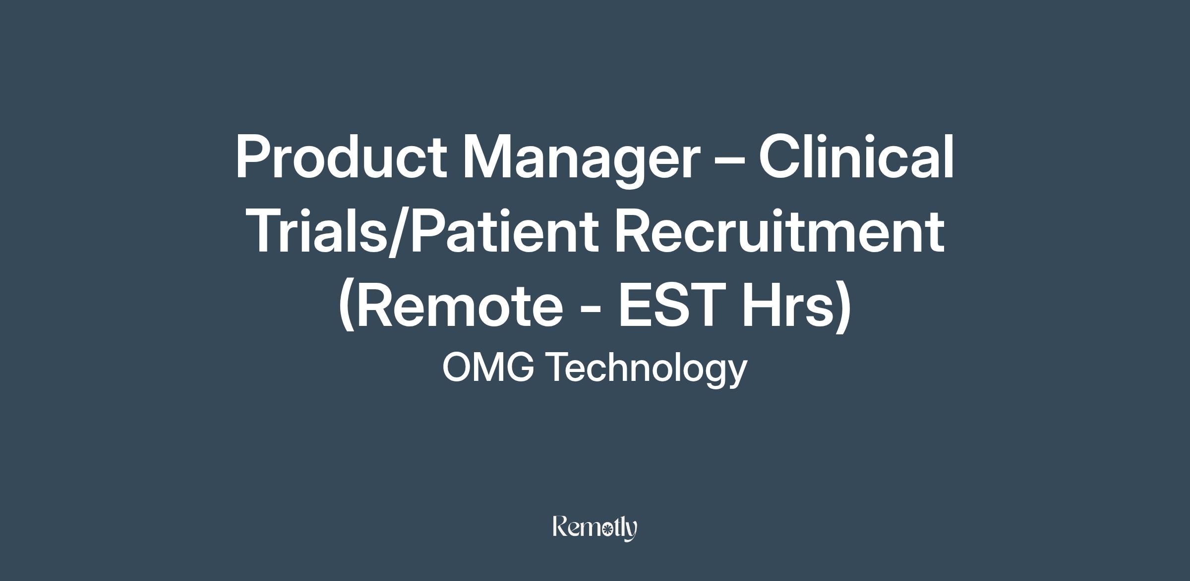 Product Manager – Clinical Trials/Patient Recruitment (Remote - EST Hrs)