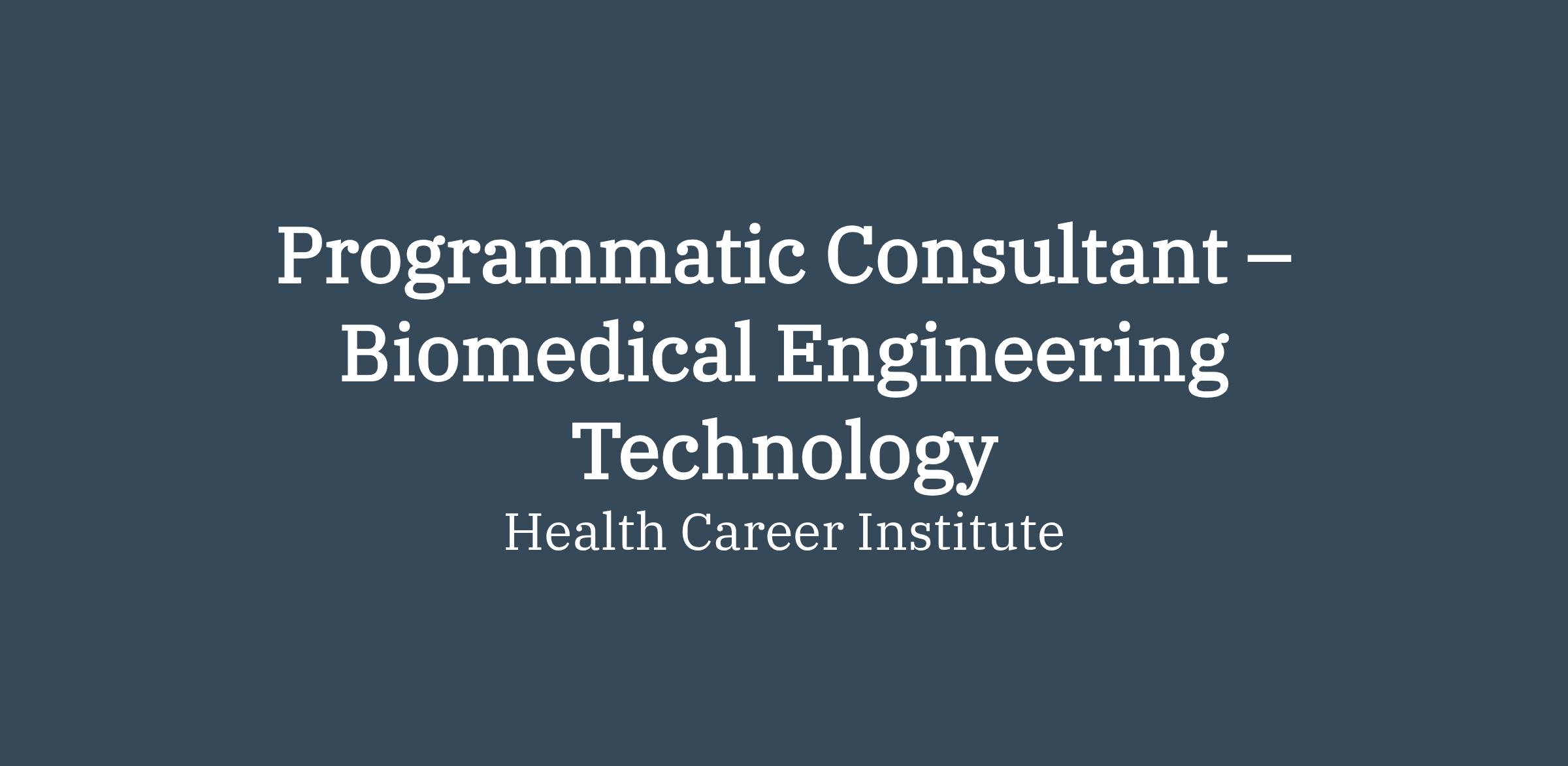 Job Title: Programmatic Consultant – Biomedical Engineering Technology