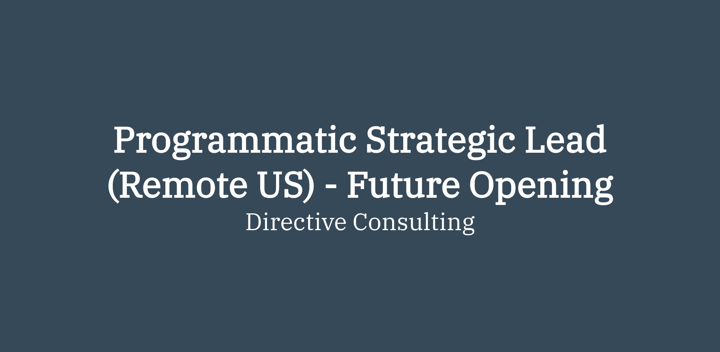 Programmatic Strategic Lead (Remote US) - Future Opening