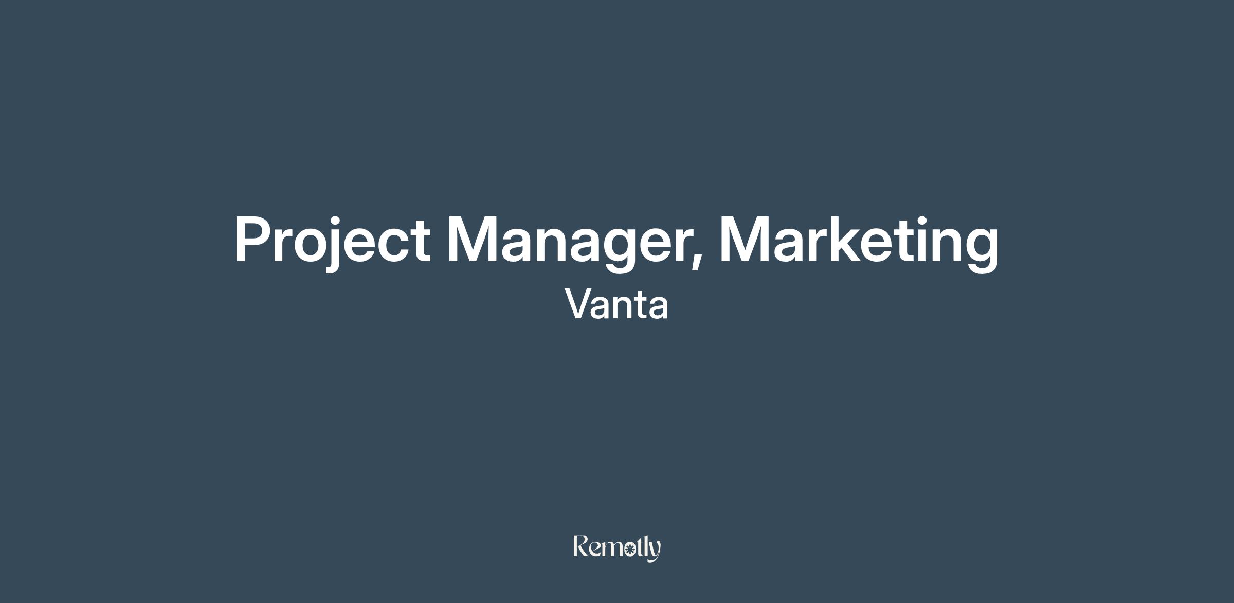 The Marketing Operations team at Vanta ensures that systems, processes and data are in place for marketing to run efficiently. The Project Manager will lead the planning and execution of strategic initiatives by aligning stakeholders on program goals, scope and success metrics. They will design and implement scalable workflows, intake processes, templates and playbooks to support repeatable program execution.