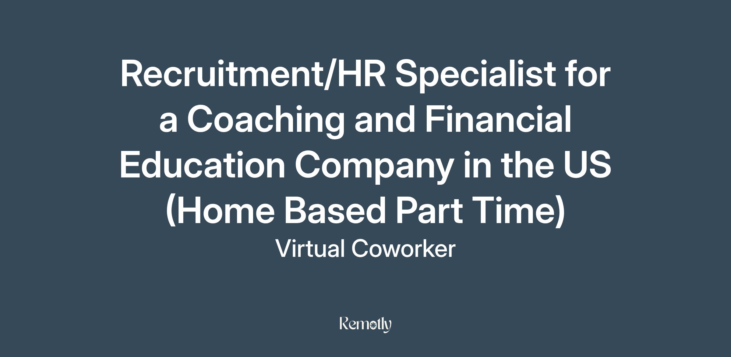 https:\/\/www.linkedin.com\/company\/virtual\-coworker"}],"isMobile":false,"iframe":"true","jobType":"Part time","applyName":"Apply Now!","zsoid":"8208015","FontFamily":"Arial, Helvetica, sans\-serif","jobOtherDetails":[{"fieldLabel":"Job Category","uitype":2,"value":"HR\/Recruitment"},{"fieldLabel":"Work Schedule","uitype":1,"value":"Monday to Friday, 9 am \- 1 pm Central Standard Time (Subject to Flexibility)"},{"fieldLabel":"Hours Per Day","uitype":2,"value":"Part Time â 4 hours per day"},{"fieldLabel":"Industry","uitype":2,"value":"Technology"},{"fieldLabel":"Work Location","uitype":1,"value":"Home Based \- Philippines"},{"fieldLabel":"City","uitype":1,"value":"Mesa"},{"fieldLabel":"State\/Province","uitype":1,"value":"Arizona"},{"fieldLabel":"Zip\/Postal Code","uitype":1,"value":"85209"}],"headerName":"Recruitment\/HR Specialist for a Coaching and Financial Education Company in the US (Home Based Part Time)","widgetId":"147741000000390320","isJobBoard":"false","userId":"147741000000027001","attachArr":[],"customTemplate":"3","isCandidateLoginEnabled":true,"jobId":"147741000068820013","FontSize":"12","location":"Mesa","embedsource":"CareerSite","logoId":"idwop0ece2fcac21a443ba16938fb832bdc3b"}