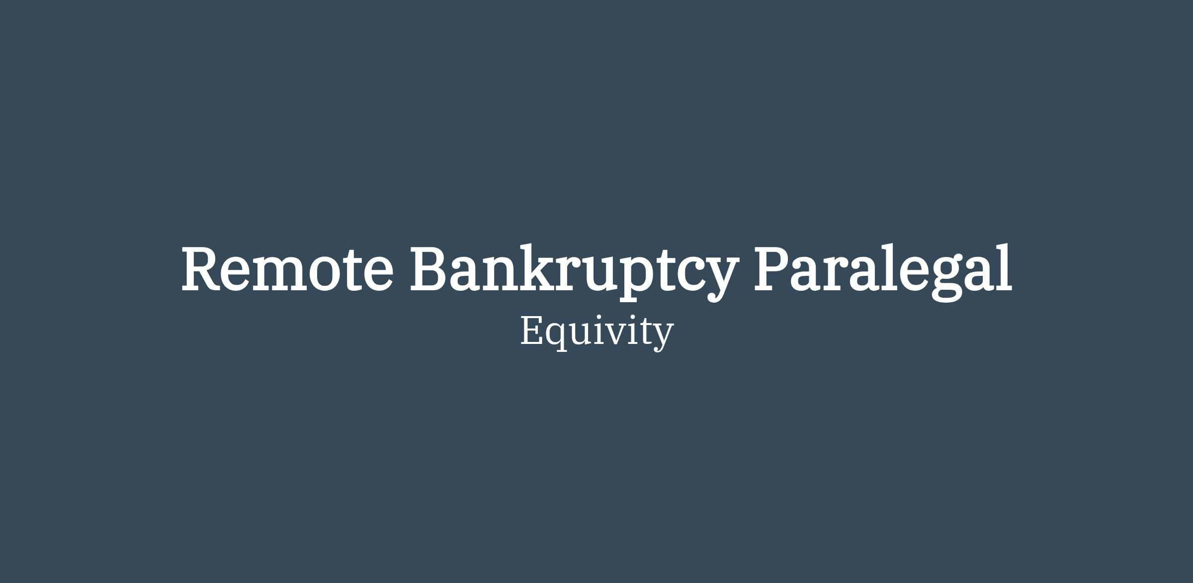 Equivity is seeking an experienced Remote Bankruptcy Paralegal to support attorneys handling both consumer and business bankruptcy matters, including Chapters 7, 11, and 13.