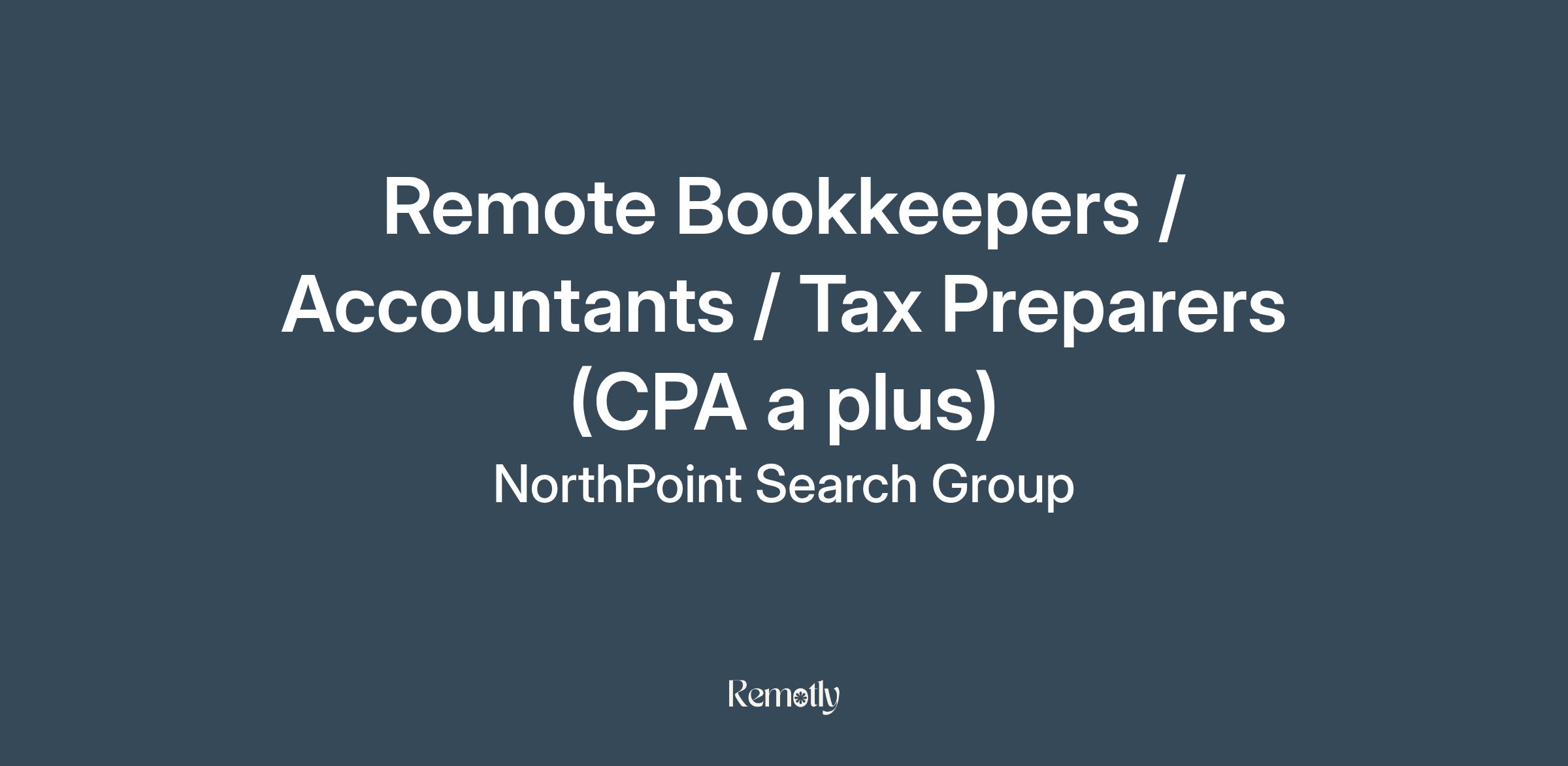 Remote Bookkeepers / Accountants / Tax Preparers (CPA a plus)