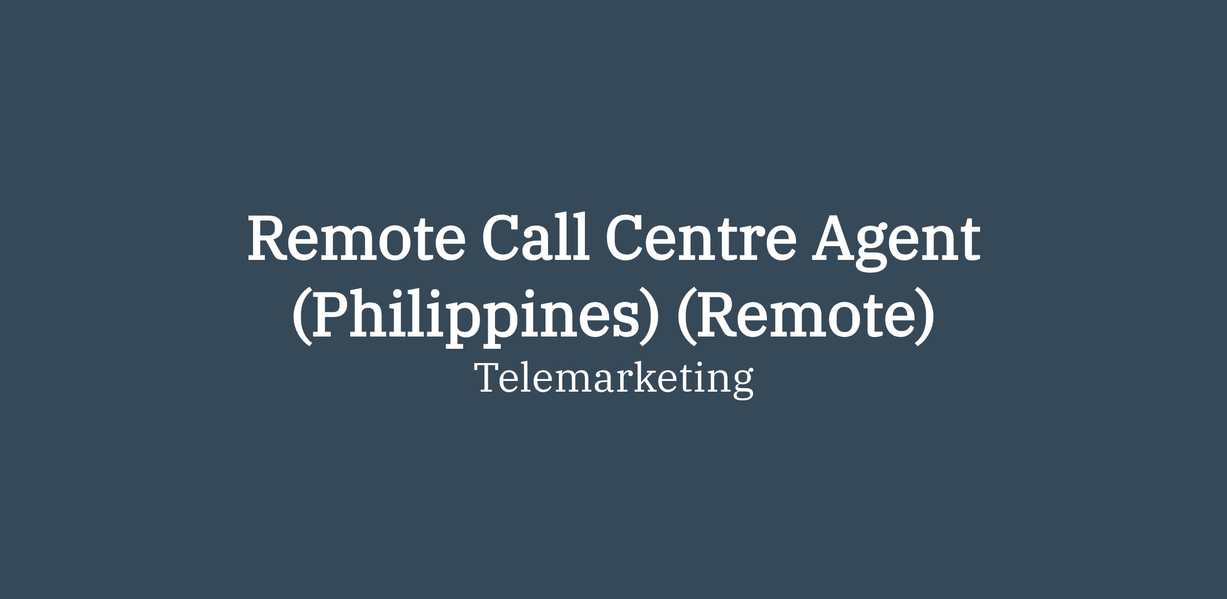 Remote Call Centre Agent (Philippines) (Remote)