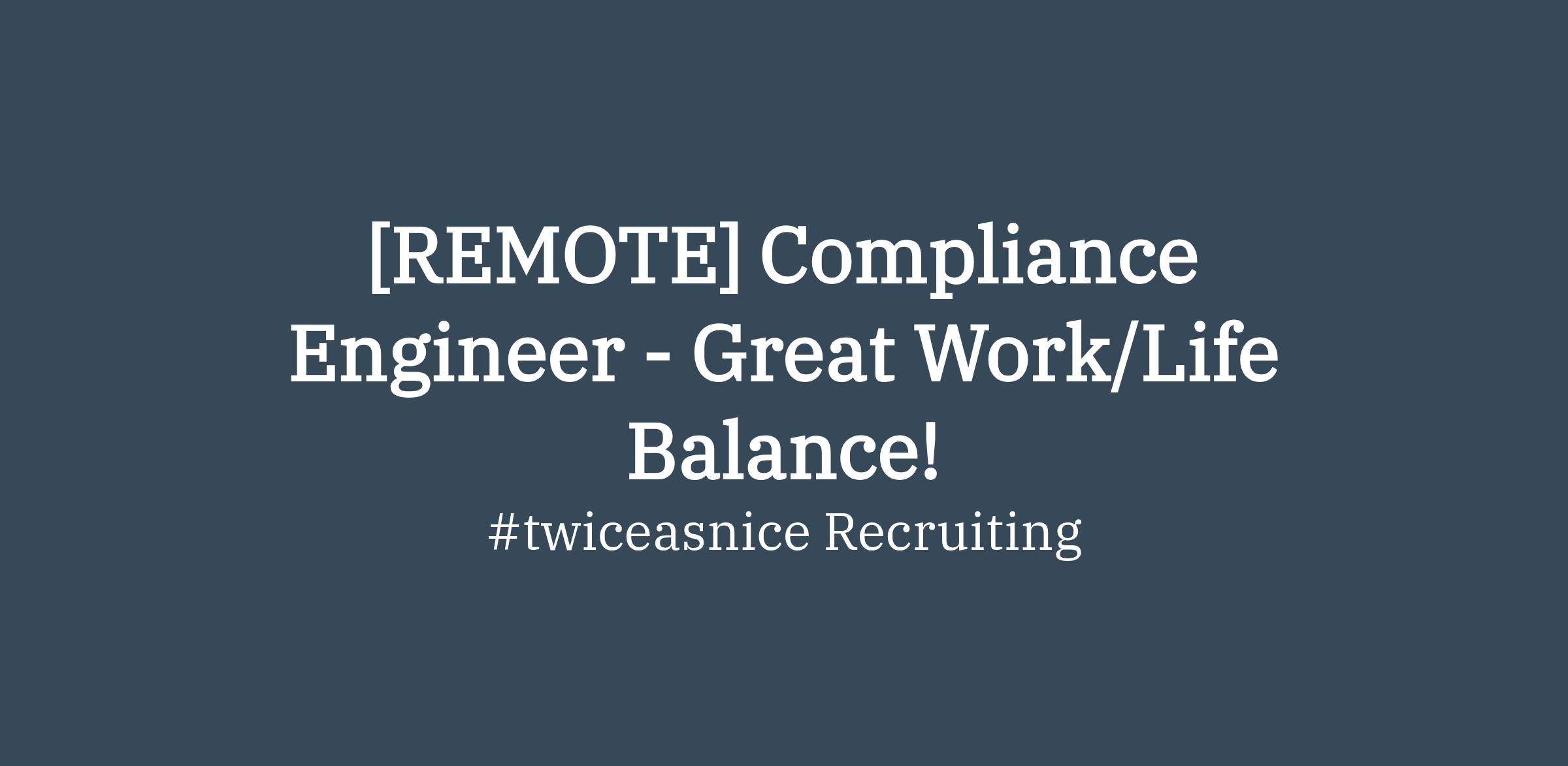 [REMOTE] Compliance Engineer - Great Work/Life Balance!