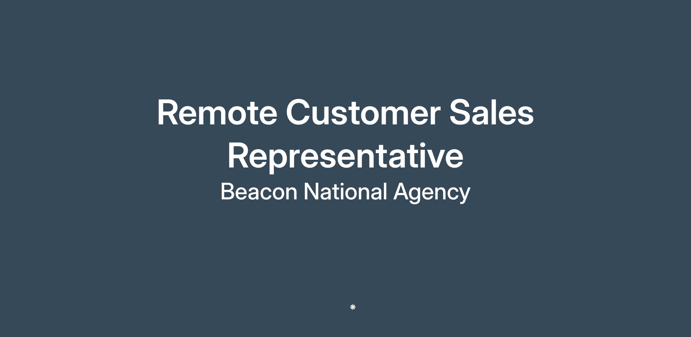 Beacon National Agency is actively seeking highly driven and charismatic individuals to join our dynamic team as Remote Customer Sales Representatives. This is an exceptional and empowering opportunity for independent professionals to harness their sales acumen and cultivate a thriving career path with a truly unlimited earning potential in this 1099 independent contractor position, all from their preferred remote workspace.
