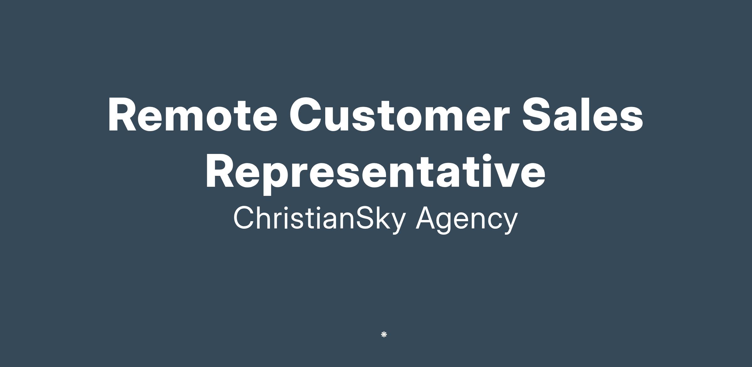 Launch your career with a purpose! ChristianSky Agency is looking for driven Remote Customer Sales Representatives to join our team. This is a unique work-from-home opportunity to build a rewarding career by helping clients secure their financial futures.