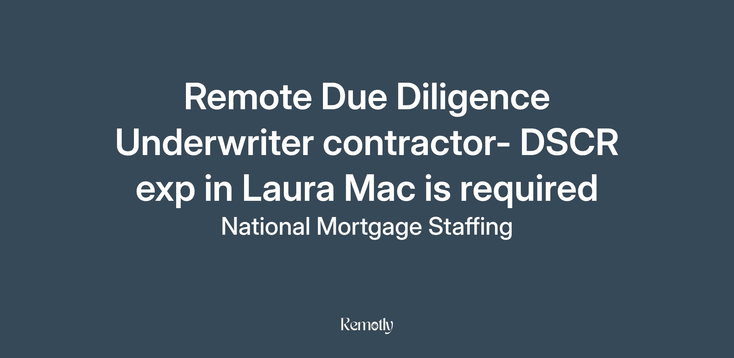 We are seeking multiple Post Close Due Diligence (Credit) Underwriters for immediate contract opportunities. This is a 1099 per-file role where you can set your own schedule, but must commit to completing a minimum number of files weekly.