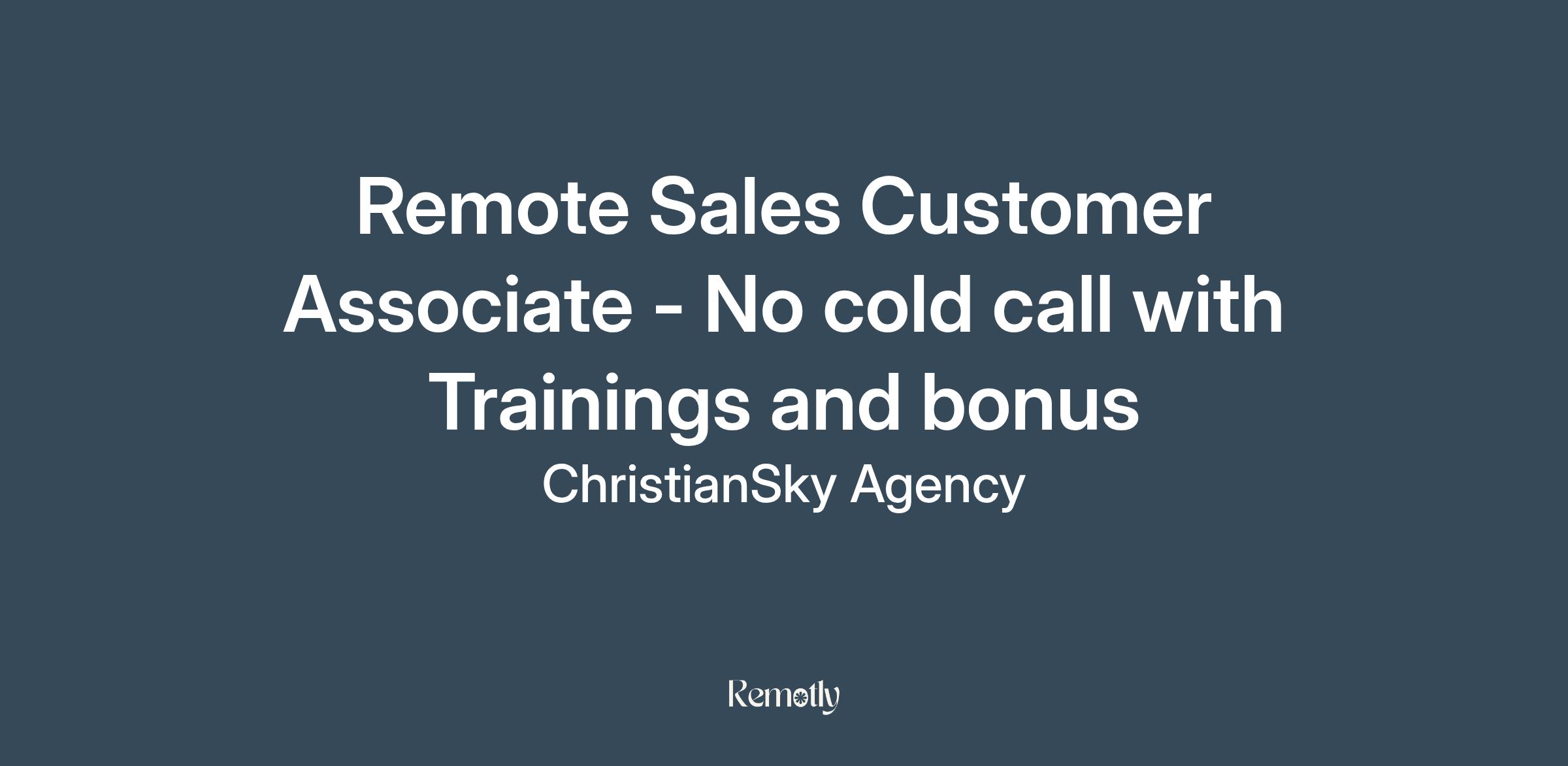 Launch your career with a purpose! ChristianSky Agency is looking for driven Remote Sales Customer Associate to join our team. This is a unique work-from-home opportunity to build a rewarding career by helping clients secure their financial futures.