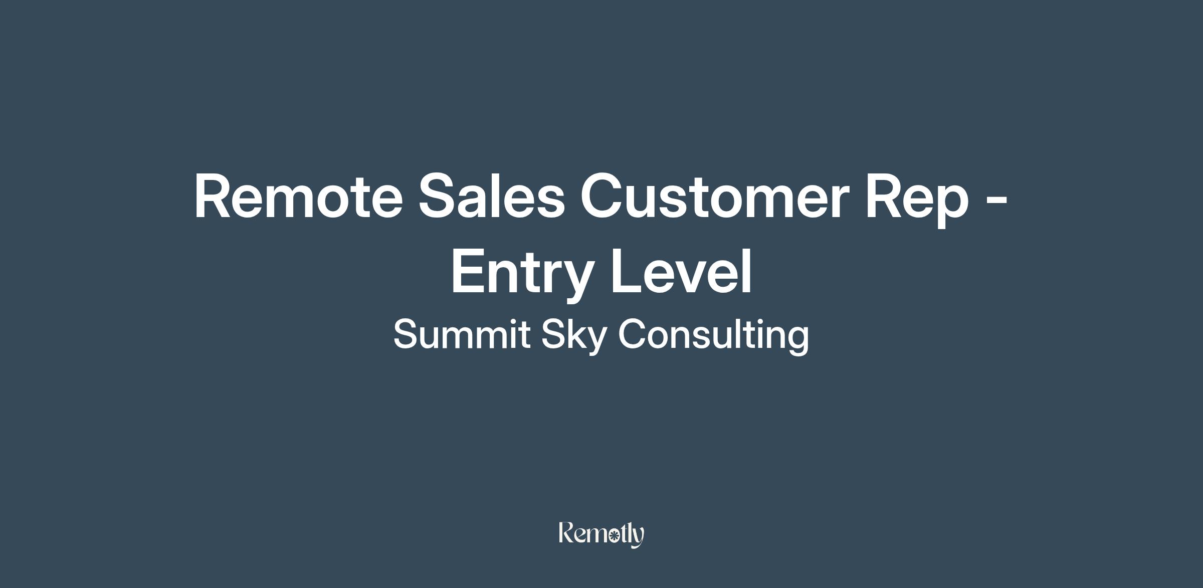 New York Applicants OnlySummit Sky Consulting is hiring motivated Sales Customer Representatives to join our remote team. While the position is primarily remote, you’ll sometimes meet with partners face-to-face, making it important that you’re New York based and comfortable with short trips.