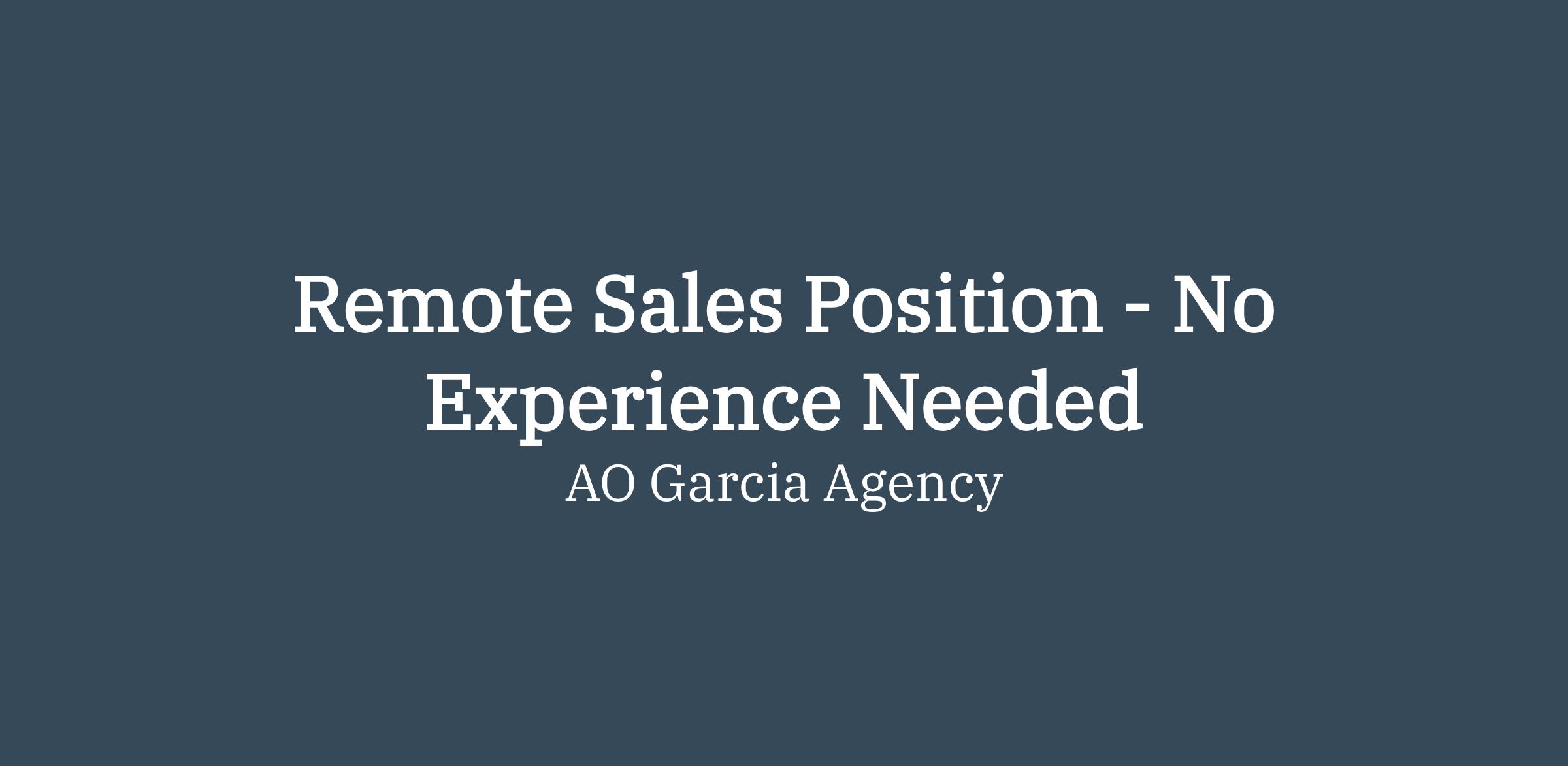 Remote sales opportunity. Entry-level applicants welcome. Training provided. Commission-based income.