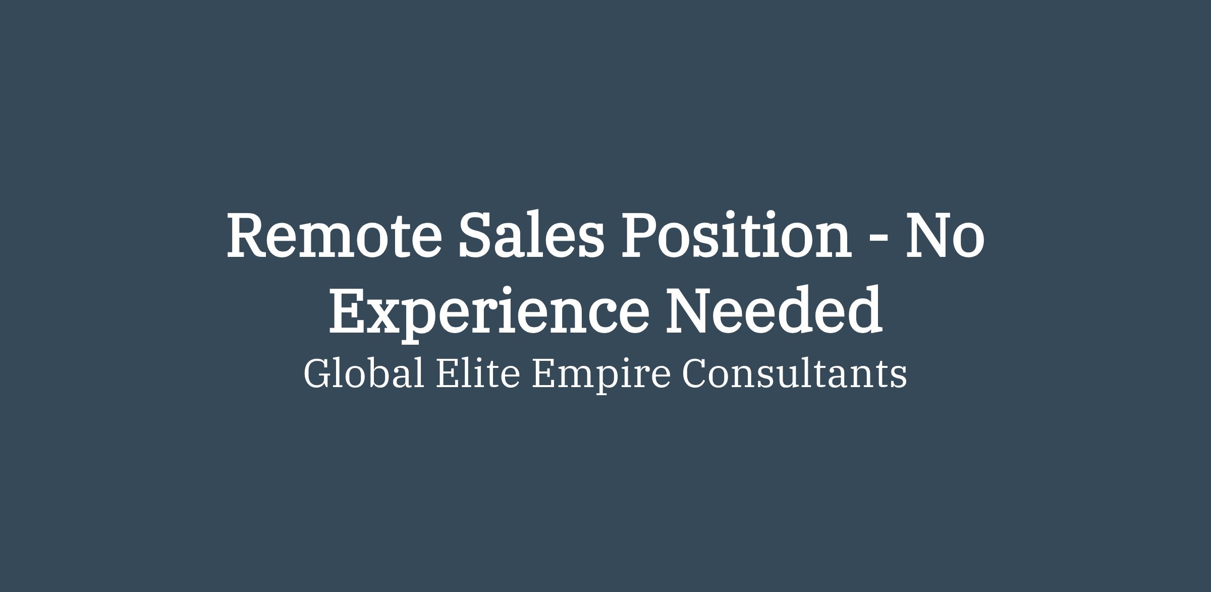 Remote sales opportunity. Entry-level applicants welcome. Training provided. Commission-based income.