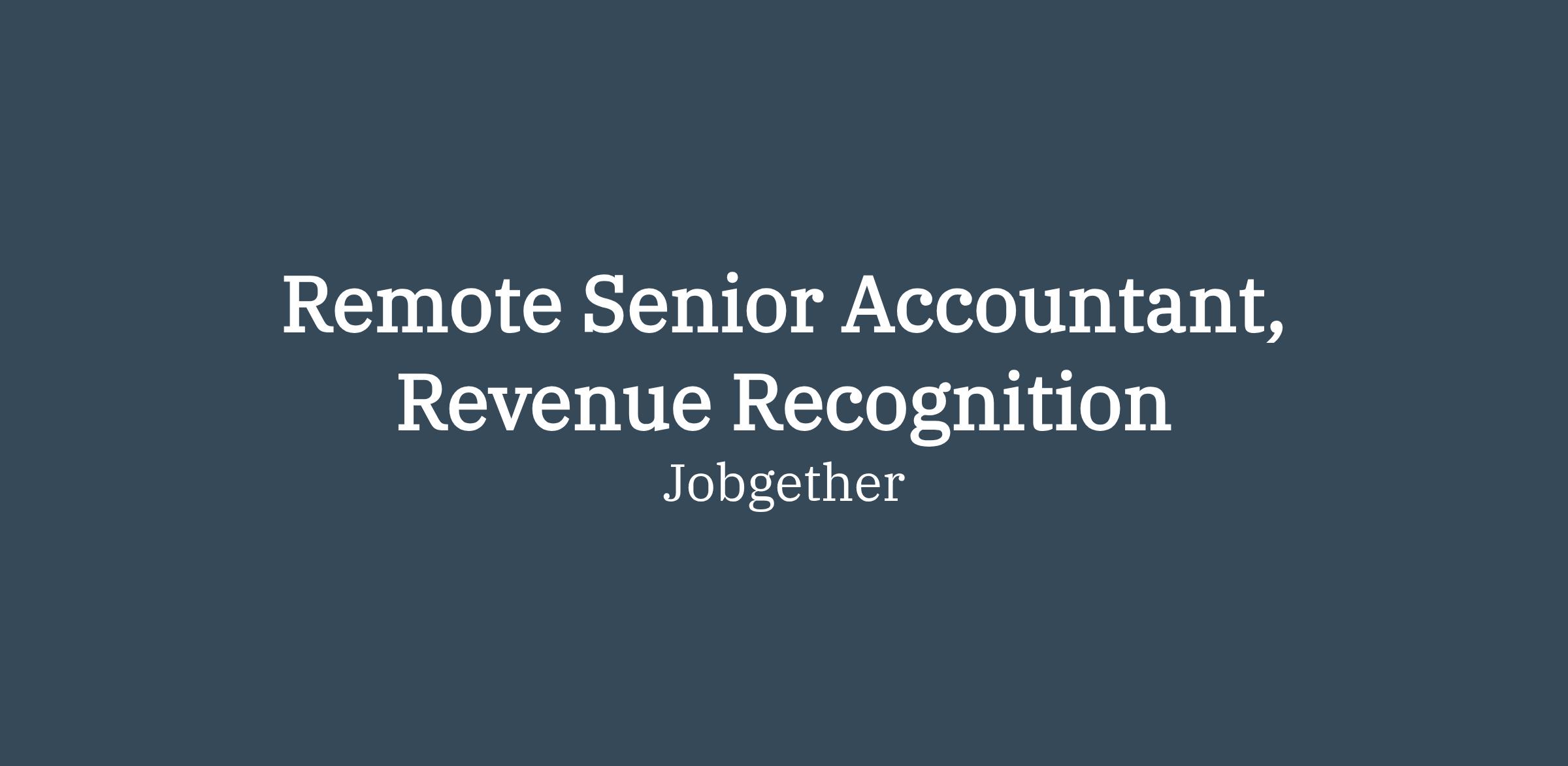 Remote Senior Accountant, Revenue Recognition
