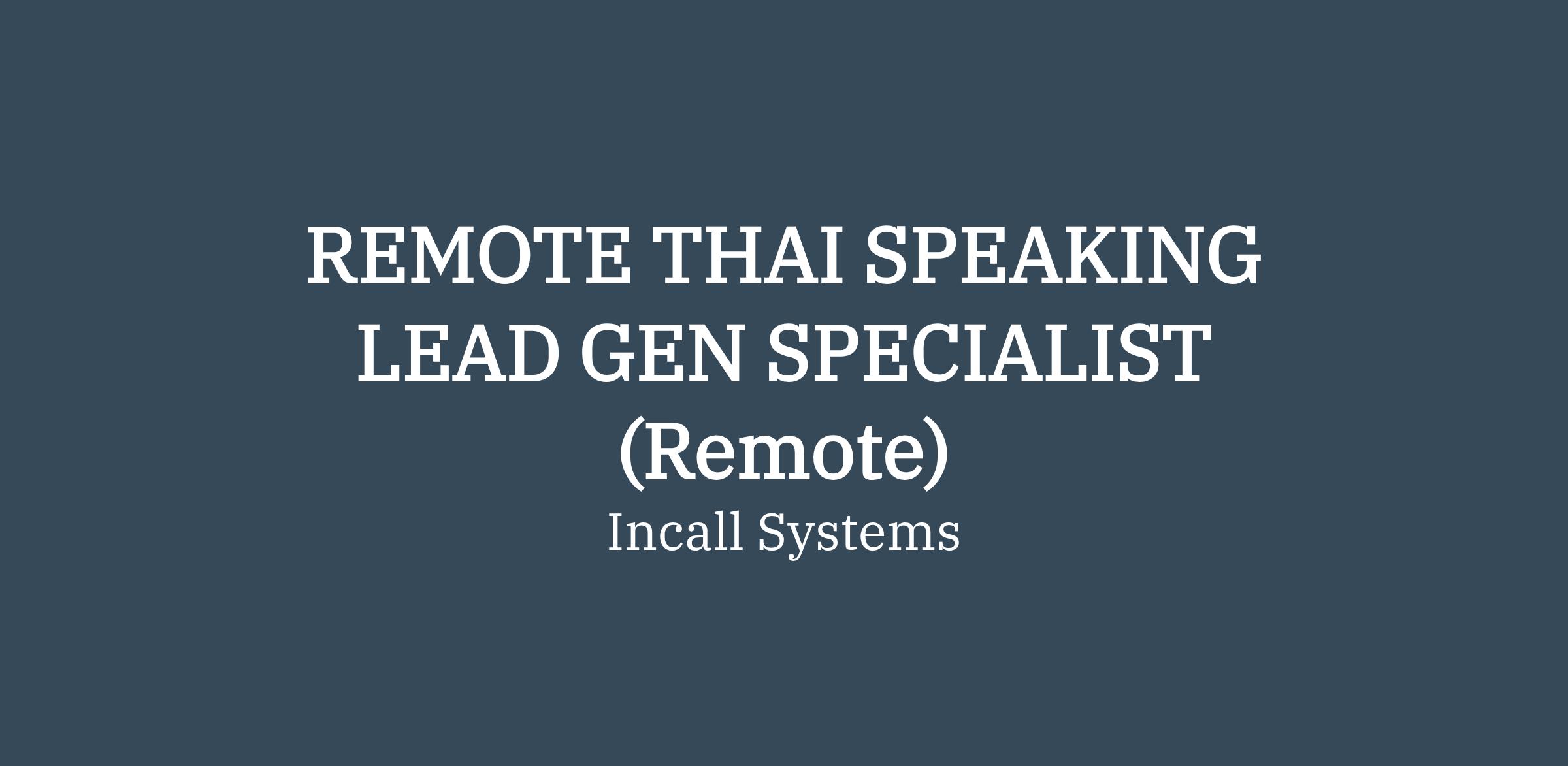 REMOTE THAI SPEAKING LEAD GEN SPECIALIST (Remote)