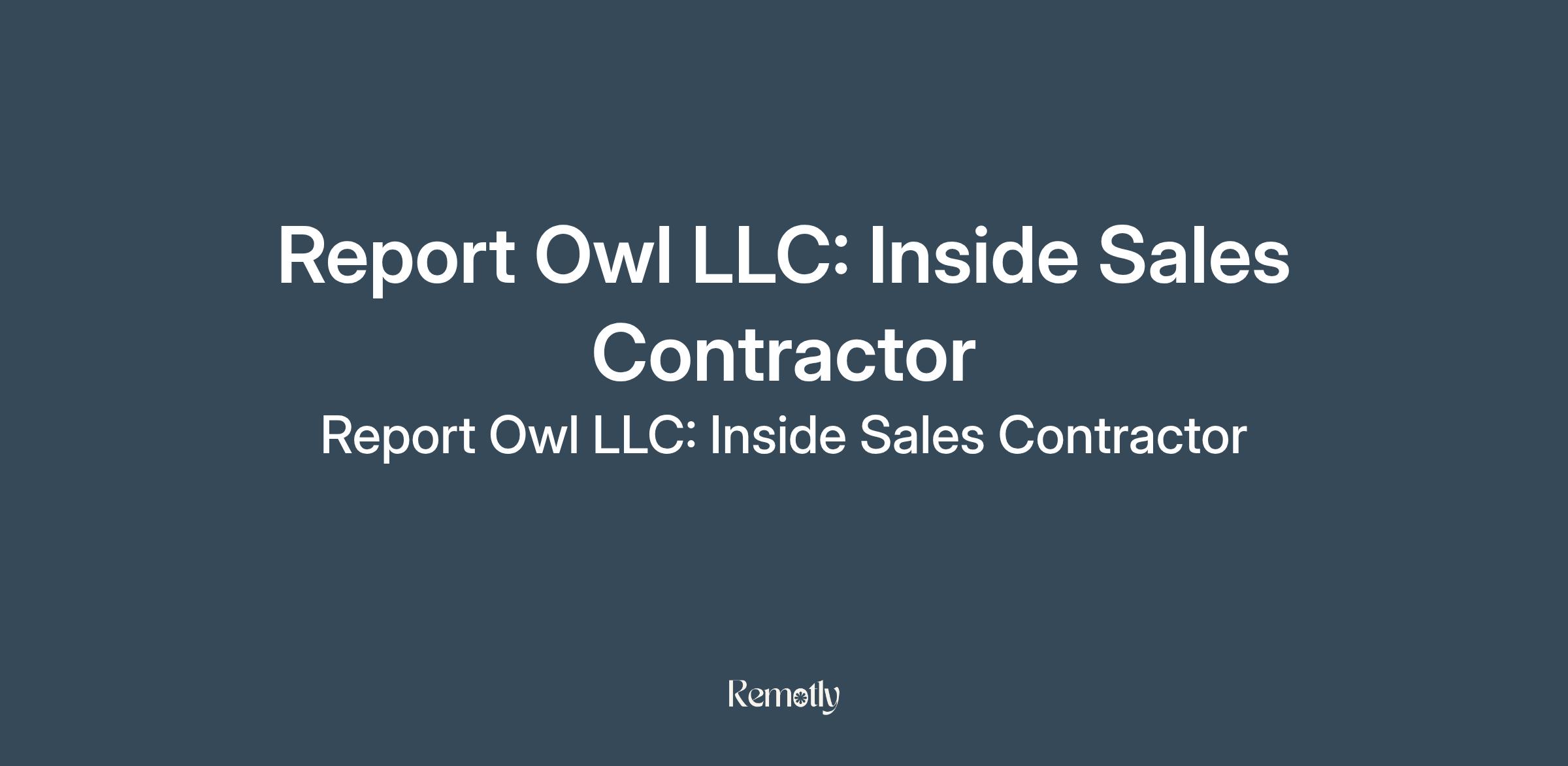 Report Owl LLC: Inside Sales Contractor
