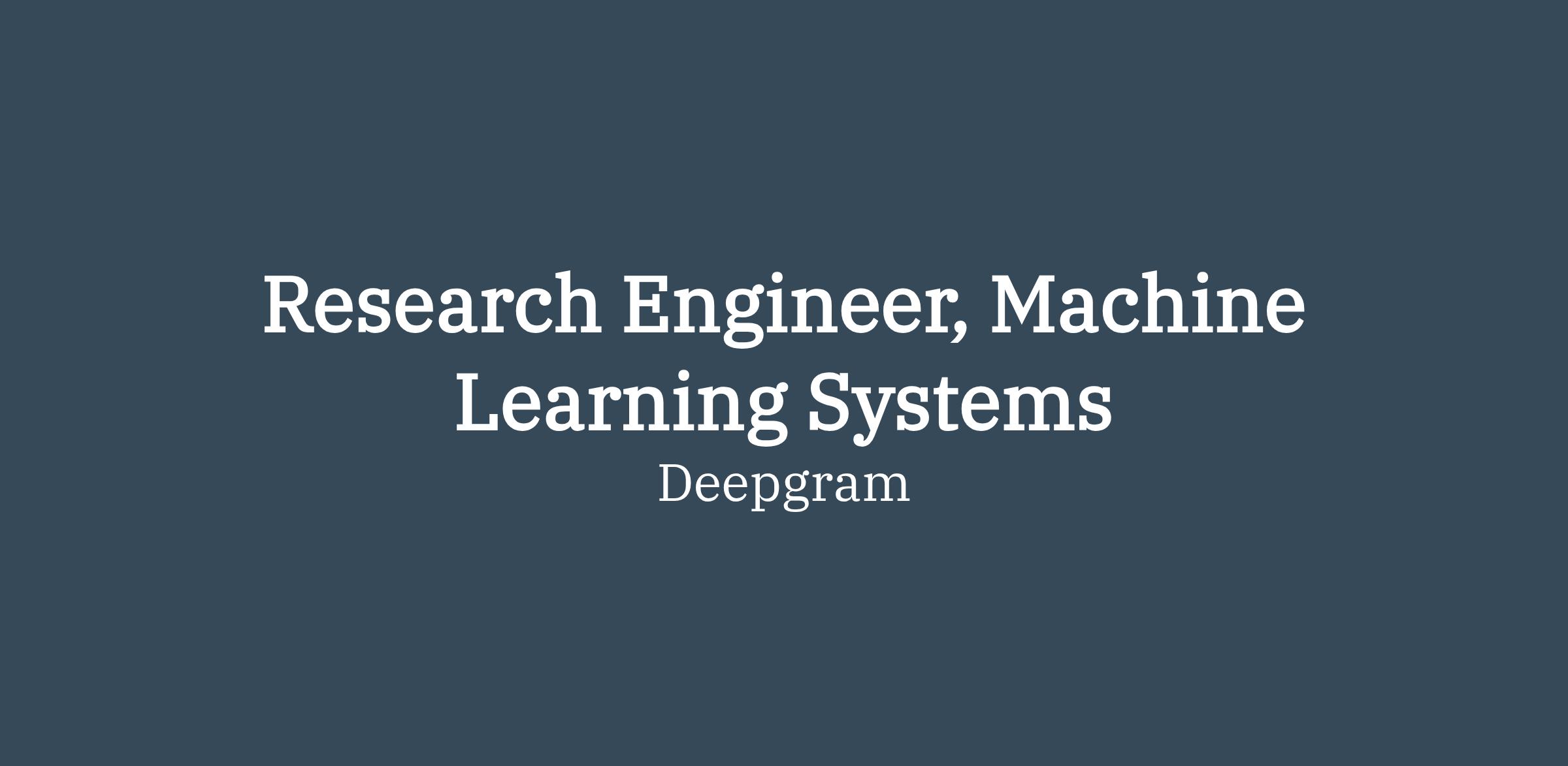 Research Engineer, Machine Learning Systems