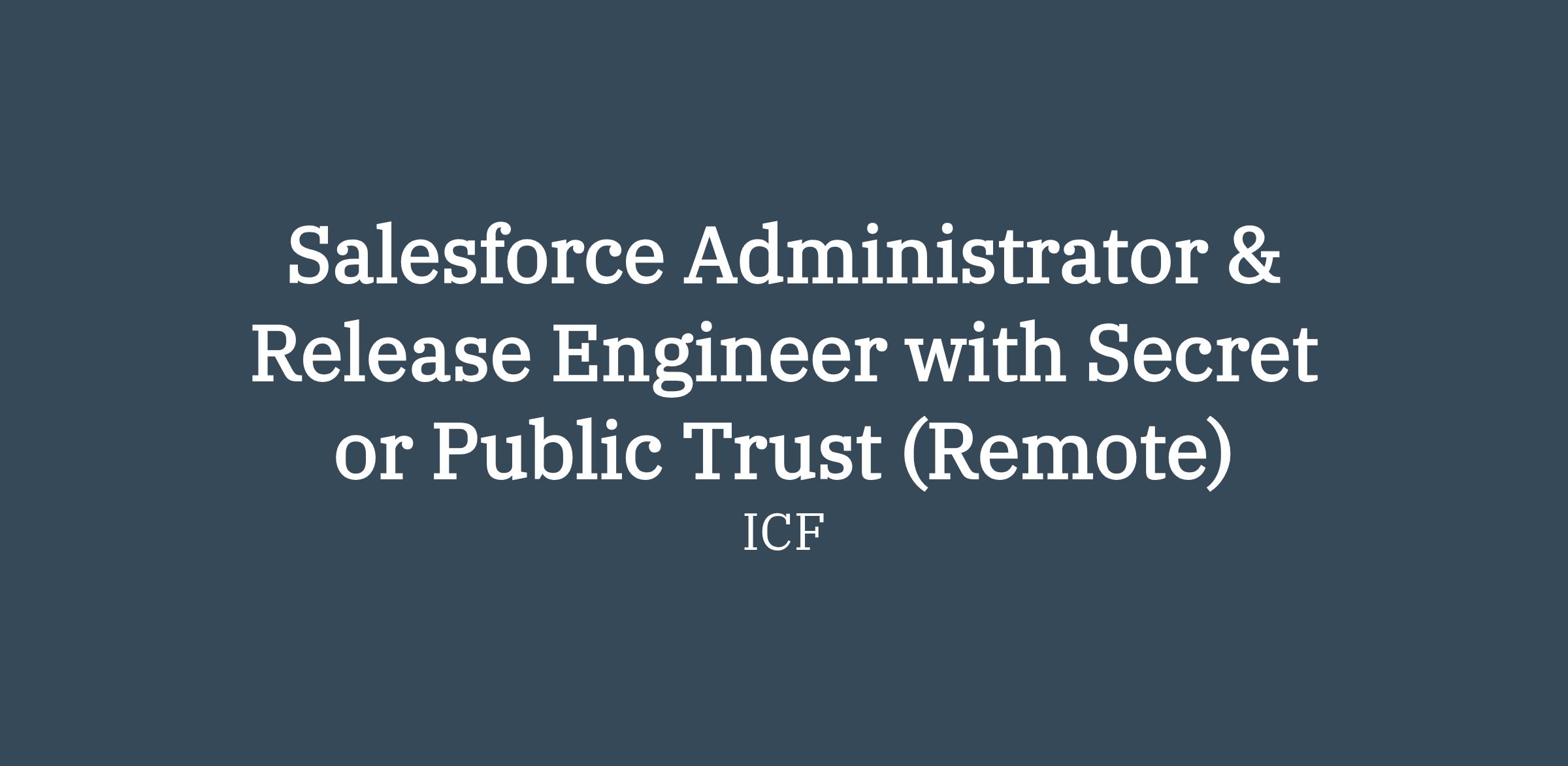 The Work: ICF seeks an experienced Salesforce System Administrator and Release Engineer to support a Salesforce implementation project for the US Department of Homeland Security (DHS). The project involves deploying a mission-critical application leveraging Salesforce’s Public Sector Solutions, integrated with 3rd party systems, and built using Agile methodology.