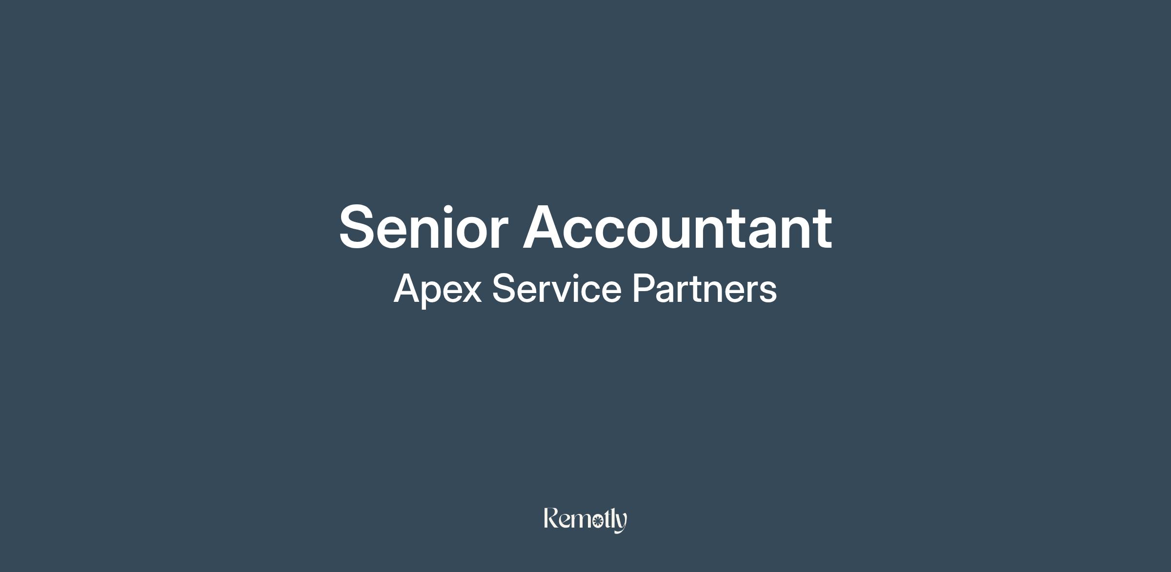 This role will report directly to the Regional Accounting Manager and the Apex Service Partners team.