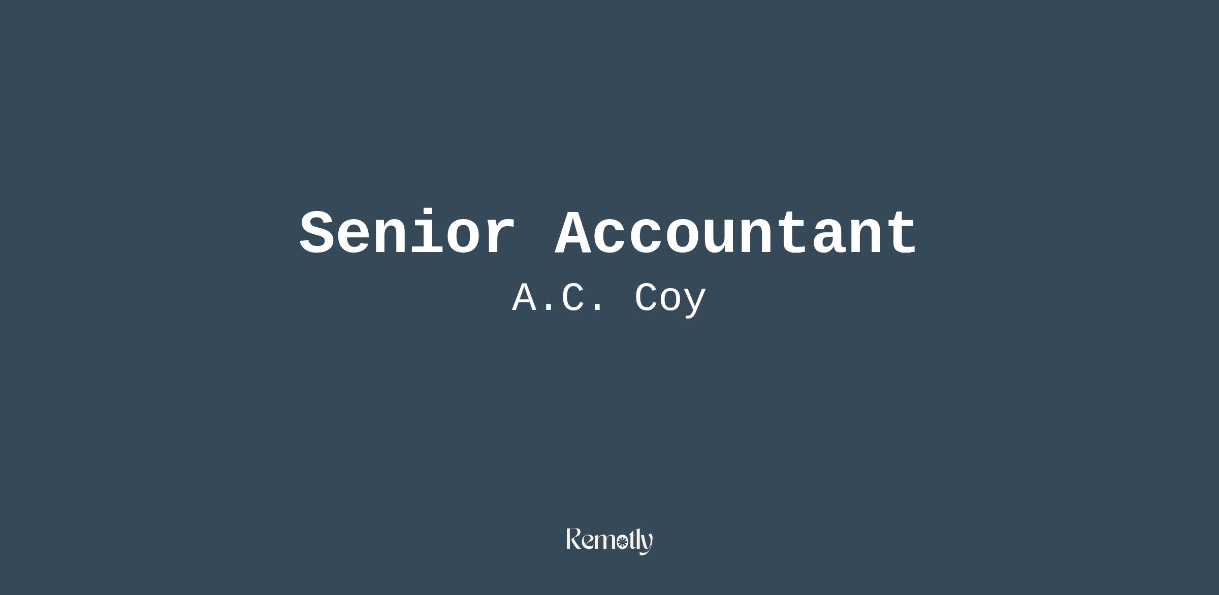 The A.C.Coy company has an immediate opening for a Senior Accountant. Ideal candidates will have 7+ years of general accounting experience with proficiency in ERP, GAAP, and IFRS.