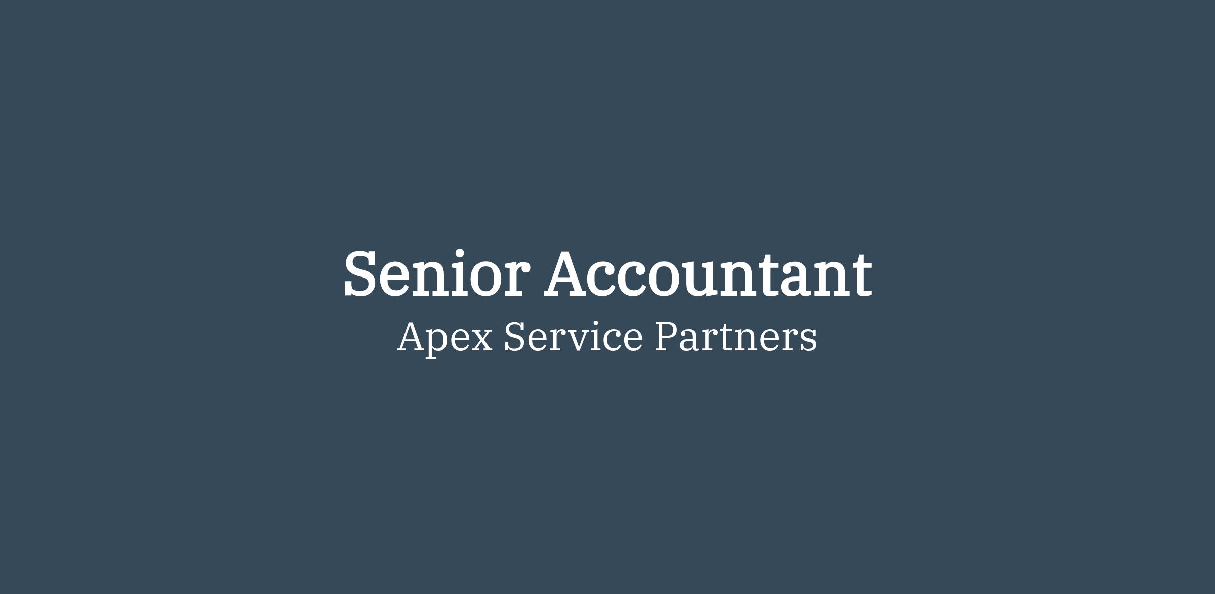 This role will report directly to the Regional Accounting Manager and the Apex Service Partners team.