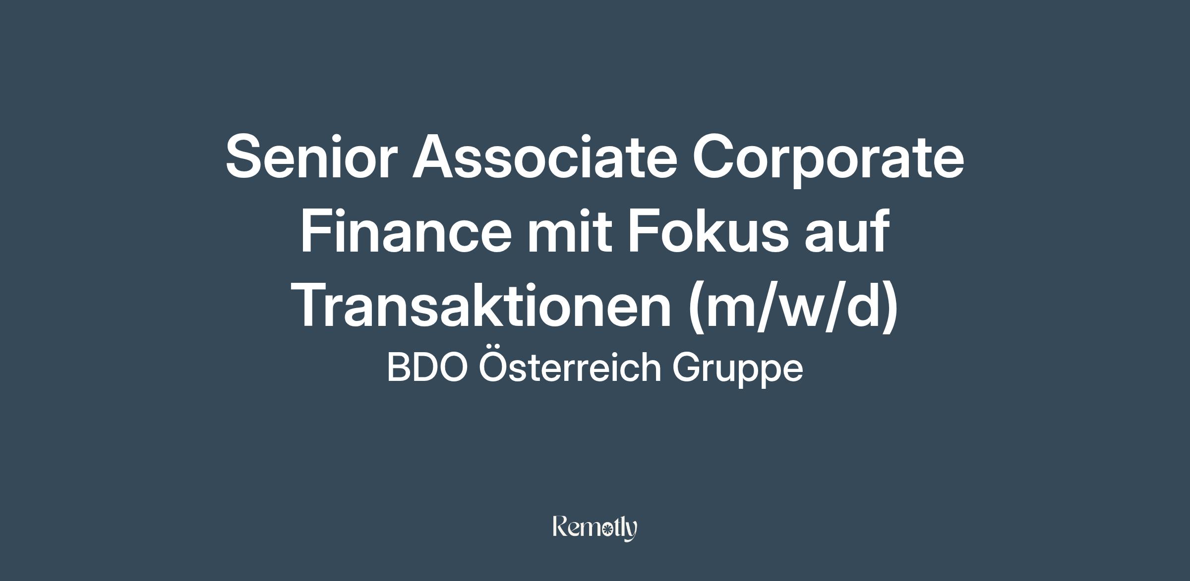 Senior Associate Corporate Finance mit Fokus auf Transaktionen (m/w/d)