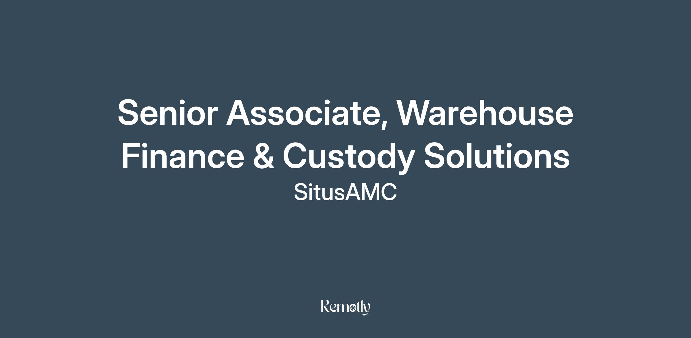 The Senior Associate, Warehouse Finance & Custody Solutions is responsible for supporting the growth of the Warehouse Financing & Custody Solutions department. This person will continually collaborate on business strategy focused on financial gain, client satisfaction, and alignment with corporate initiatives. Accountable to organize and create proposals and presentations, manage work tasks, communicate effectively with internal and external stakeholders, and support the business team. This person must be proactive, able to take guidance and general direction to perform and follow up on tasks effectively while quickly meeting deliverables.Essential Job Functions: