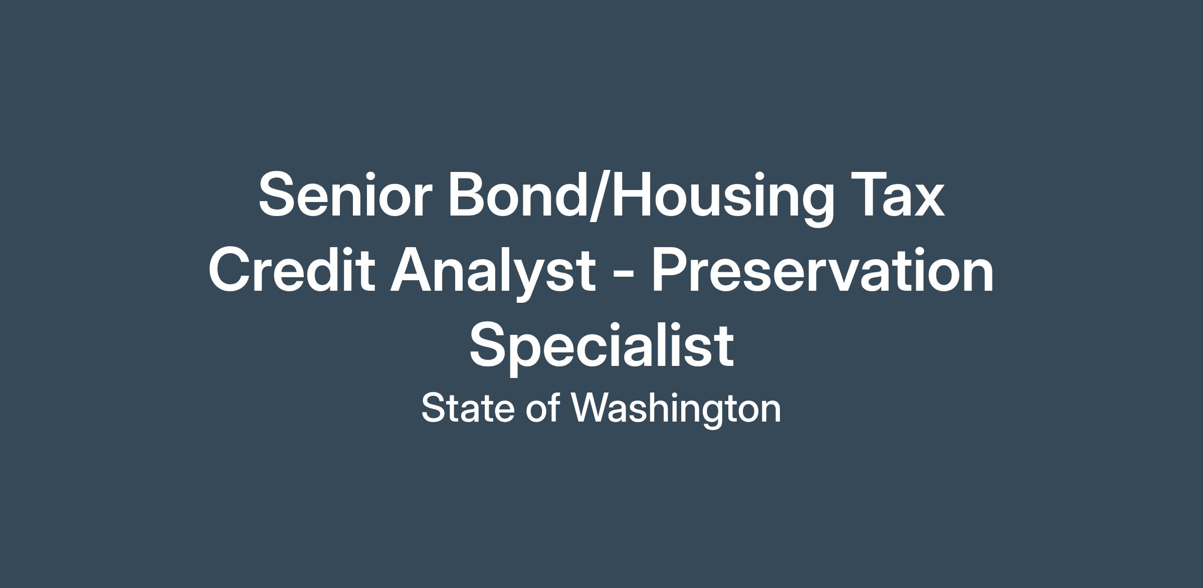 The Washington State Housing Finance Commission (WSHFC) is currently recruiting for a full-time, permanent Senior Bond/Housing Tax Credit Analyst - Preservation Specialist in the Multifamily Housing & Community Facilities Division.