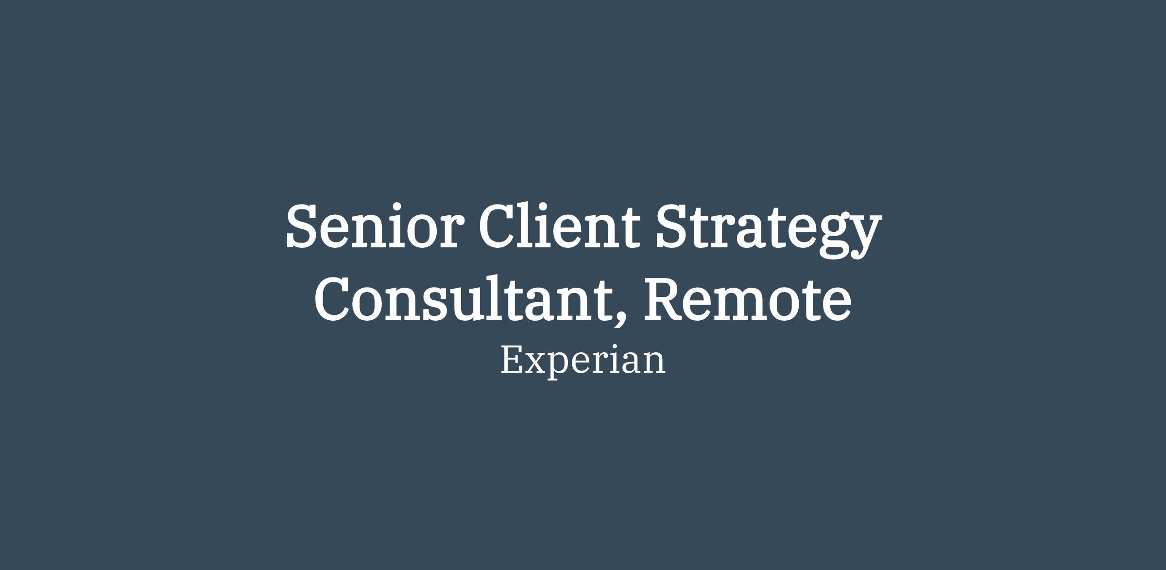 We are looking for a dynamic Senior Client Strategy Consultant to join our Experian Partner Solutions Analytics & Insights team. You will bridge the gap between data and strategy—transforming analytics into relevant insights that increase growth for our clients. You will be a trusted advisor to our sales organization and clients, applying data-driven recommendations to influence decision-making and improve outcomes. You will report into the Head of Analytics & Insights.