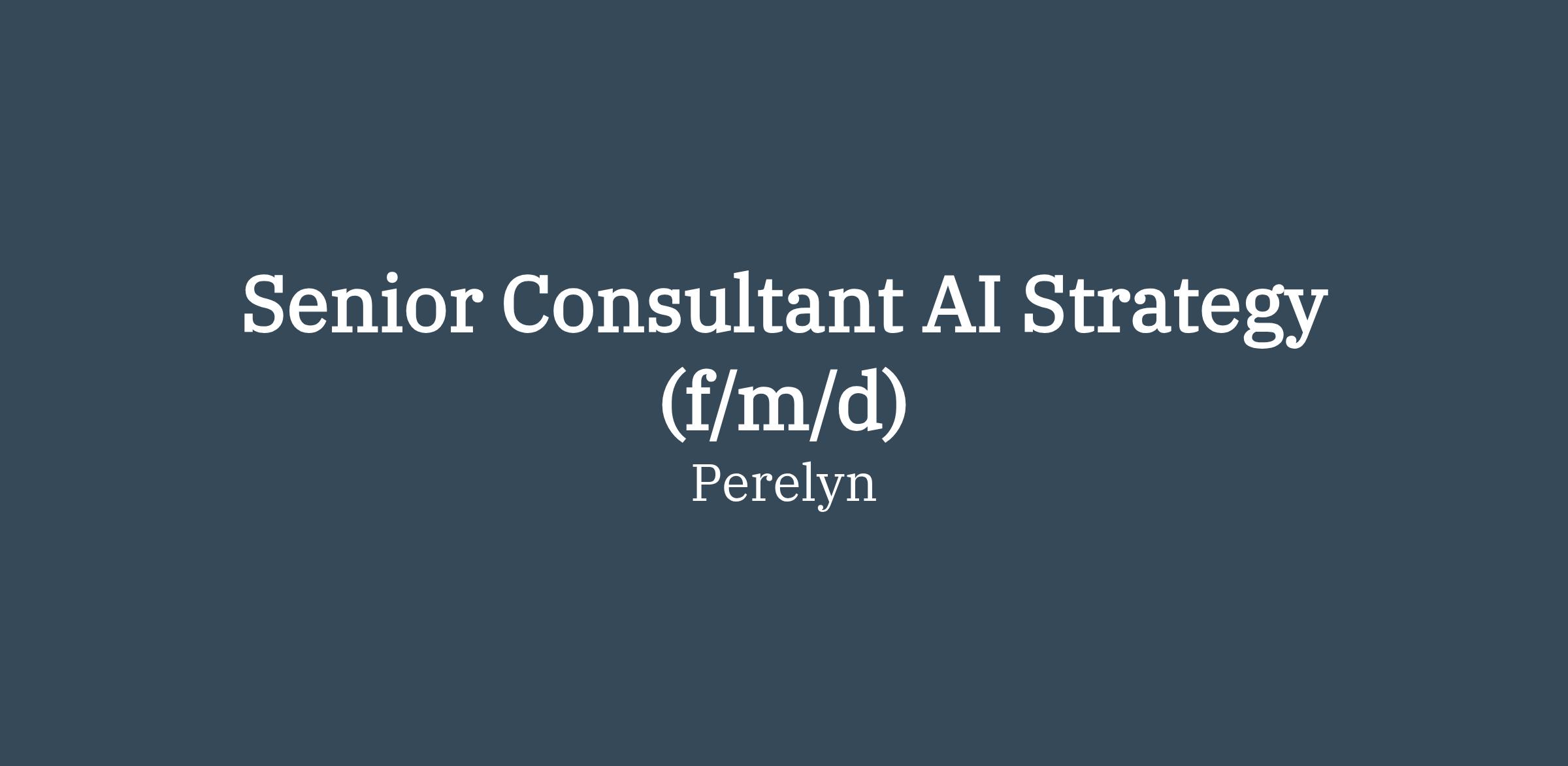 Then come and join Perelyn as Senior Consultant AI Strategy to support our customers in defining and implementing their AI strategy.