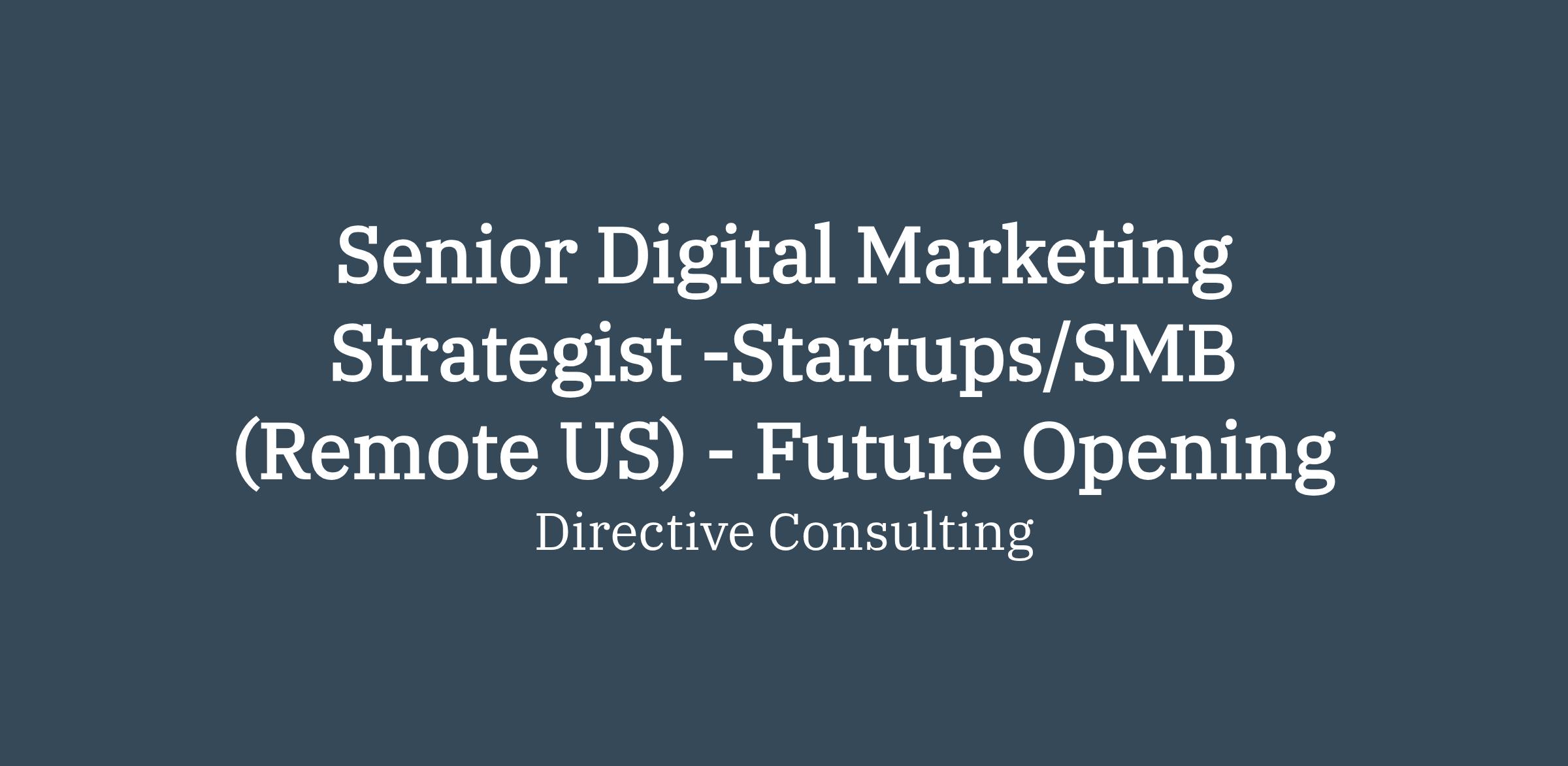 Senior Digital Marketing Strategist -Startups/SMB (Remote US) - Future Opening