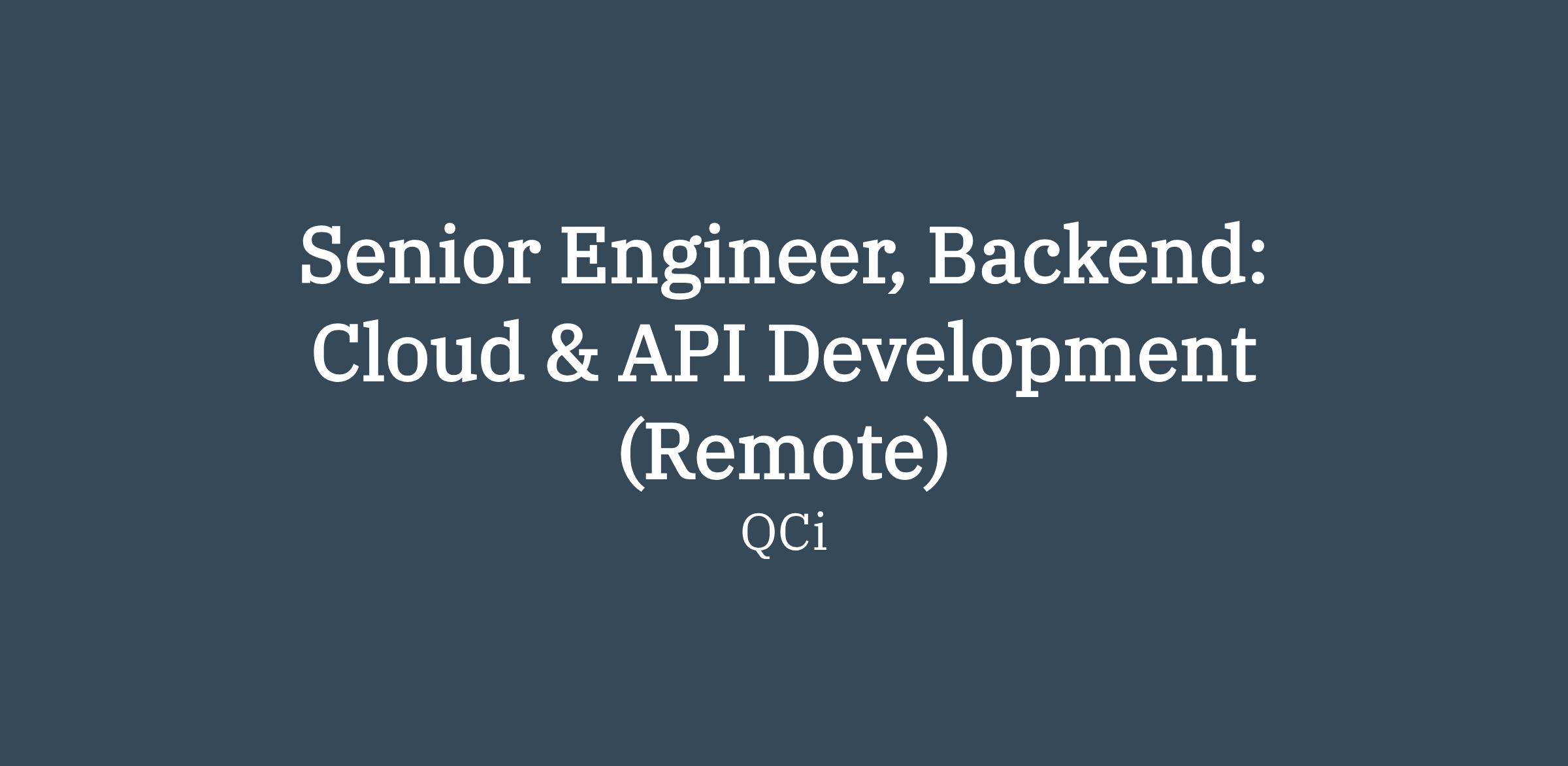 Senior Engineer, Backend: Cloud & API Development (Remote)