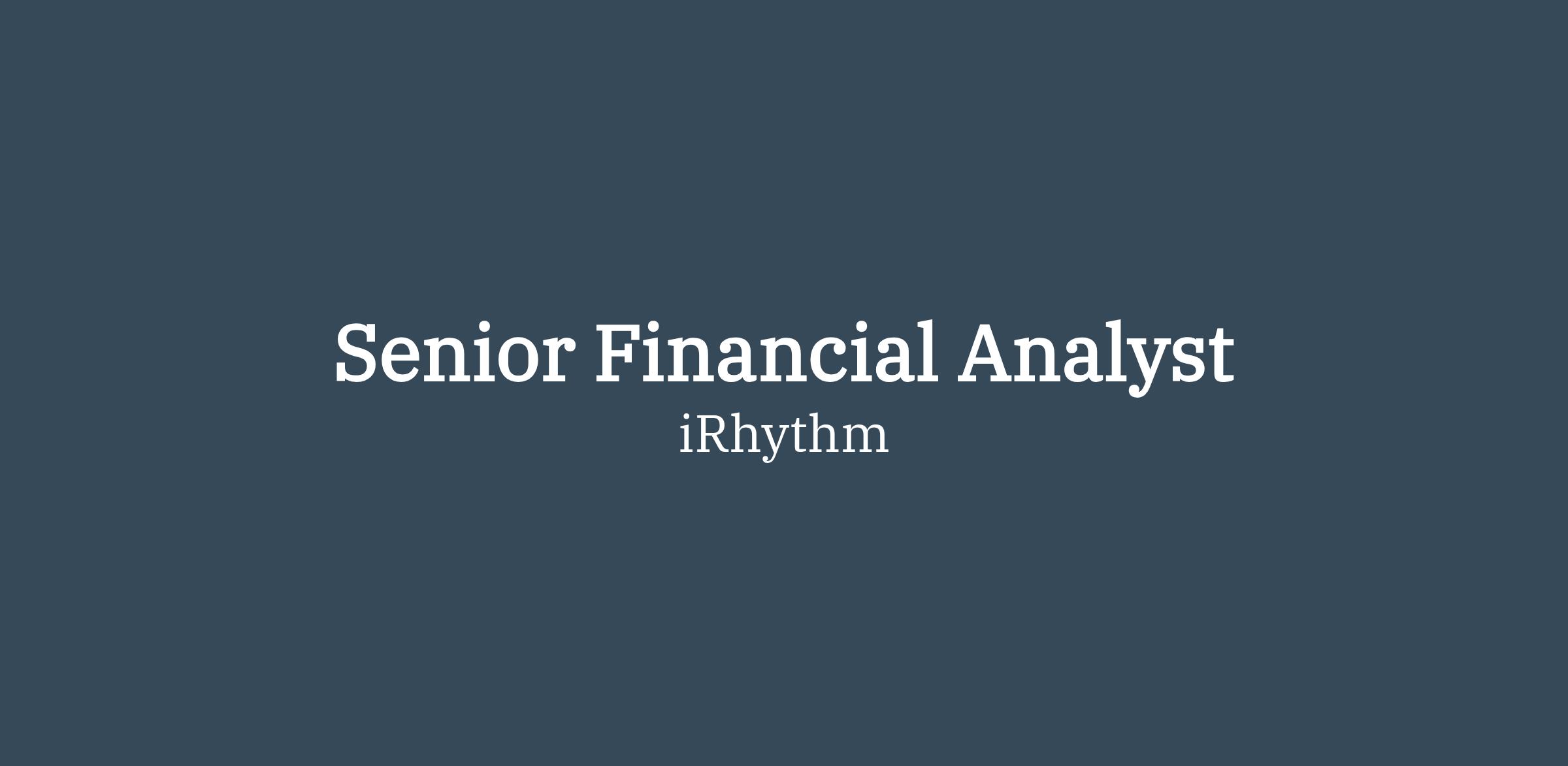 At iRhythm, you’ll have the opportunity to grow your skills and your career while impacting the lives of people around the world. iRhythm is shaping a future where everyone, everywhere can access the best possible cardiac health solutions. Every day, we collaborate, create, and constantly reimagine what’s possible. We think big and move fast, driven by our commitment to put patients first and improve lives. We need builders like you. Curious and innovative problem solvers looking for the chance to meaningfully shape the future of cardiac health, our company, and your career