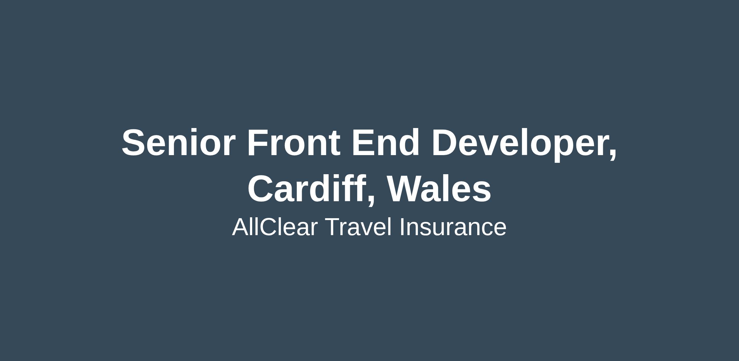 Senior Front End Developer, Cardiff, Wales
