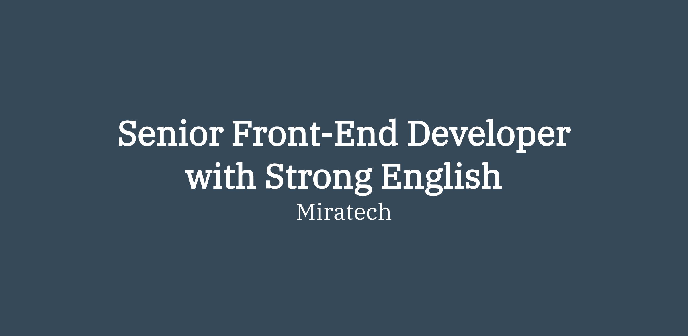 Miratech is an IT services and outsourcing company that provides services to multinational organizations all over the world. Our highly professional team achieves success with 99% of IT projects in financial, telecommunication, and technology domains. Founded in 1989, Miratech has its headquarters in New York, USA, with R&D centers in Poland, the Philippines, Slovakia, Spain, and Ukraine. Technical complexity is our passion, stability is our standard, friendly work environment is our style. We empower our employees to grow together with the company, to achieve ambitious goals, and to be a part of the international, relentless team that helps the visionaries to change the world.