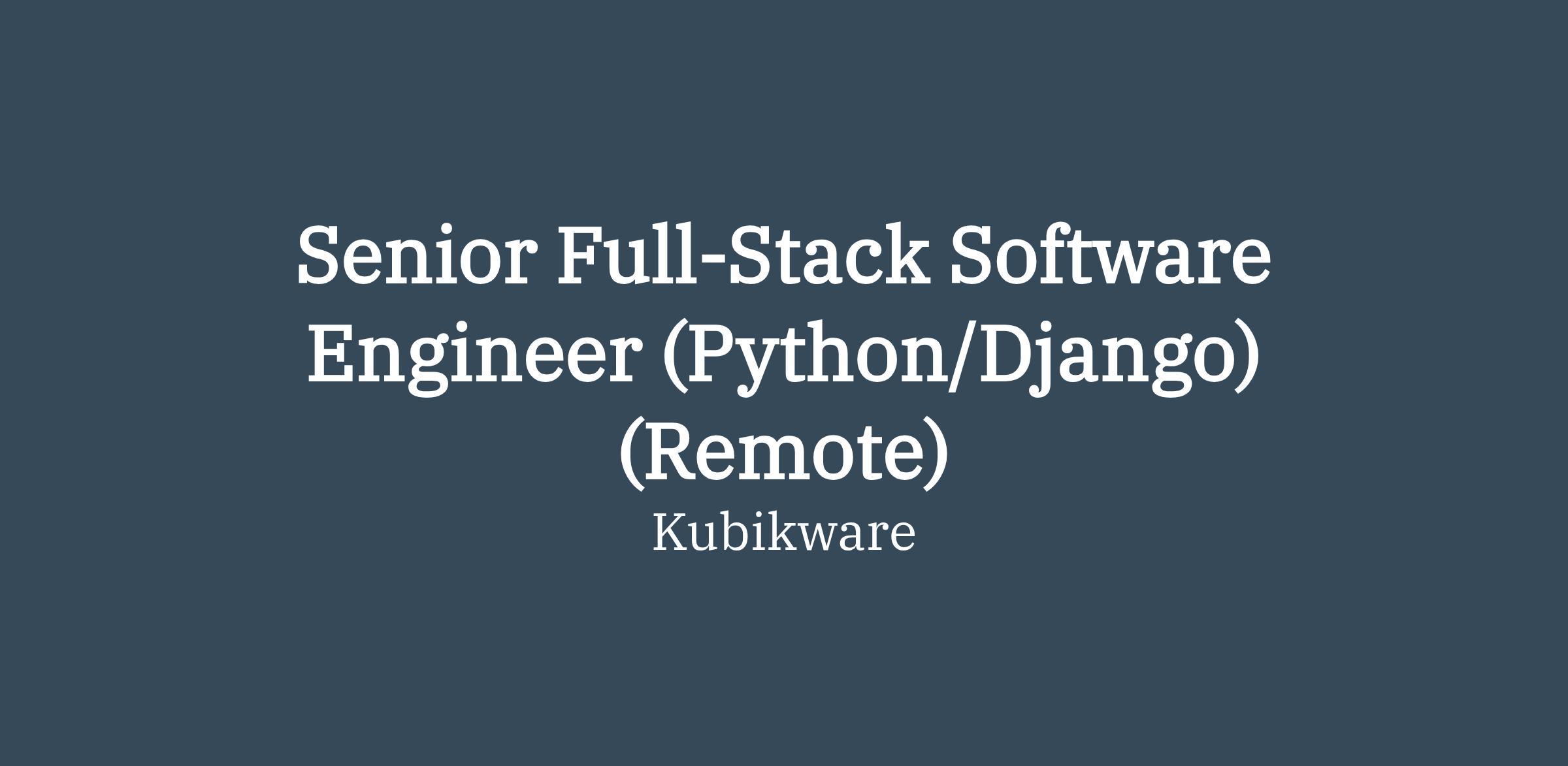 Senior Full-Stack Software Engineer (Python/Django) (Remote)