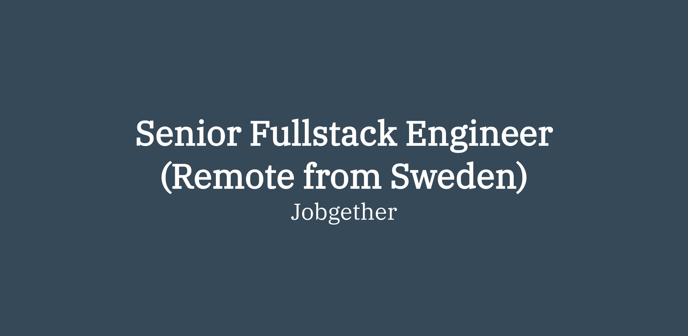 This position is posted by Jobgether on behalf of a partner company. We are currently looking for a Senior Fullstack Engineer in Sweden.