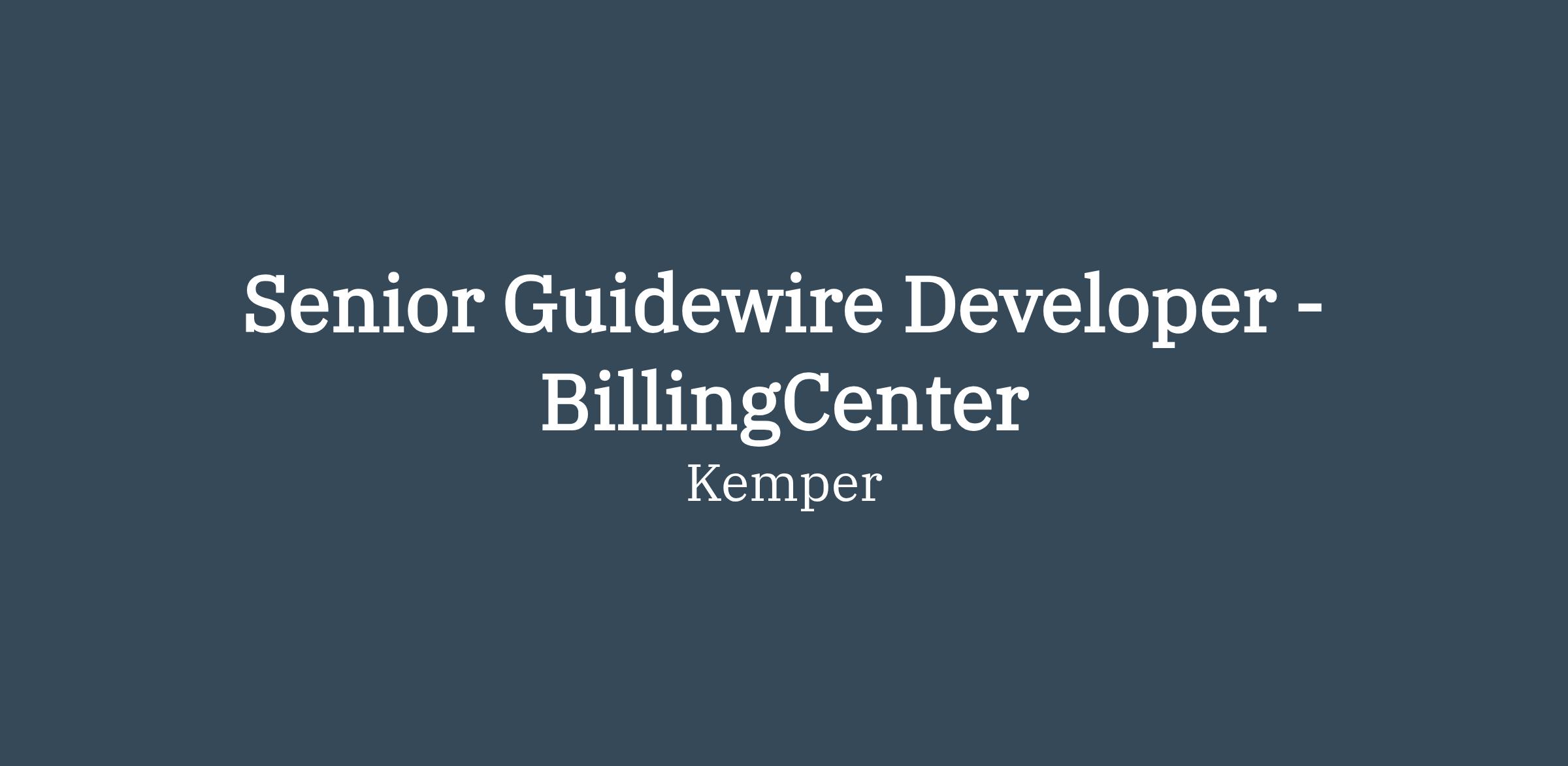 Kemper is seeking a Senior Guidewire BillingCenter Developer. This role provides leadership for multiple areas within BillingCenter and the associated integrations.