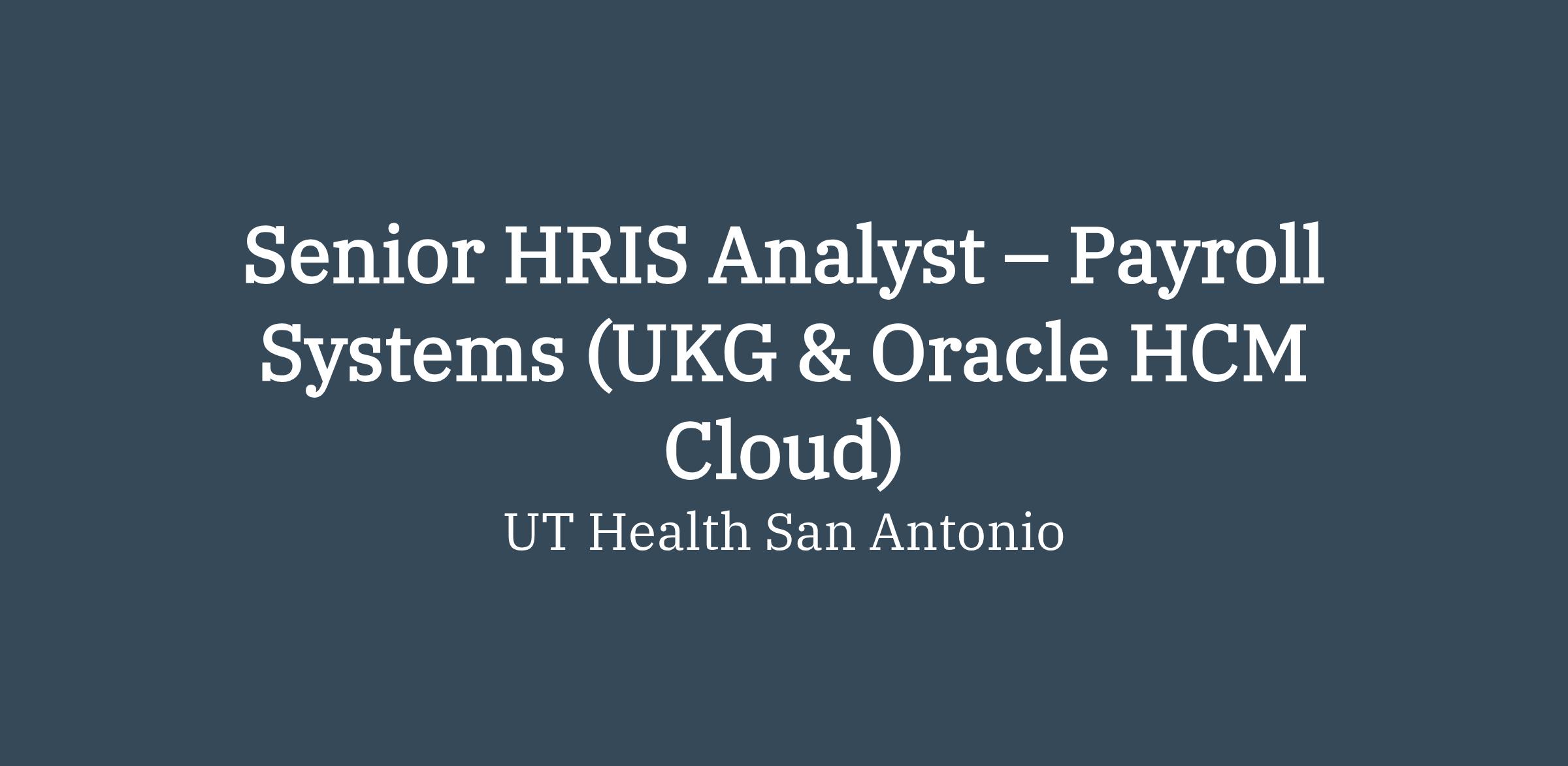 DescriptionThe Senior HRIS Analyst – Payroll Systems serves as the lead functional and technical analyst supporting enterprise payroll and workforce management technology, with primary ownership of UKG Pro Workforce Management (formerly UKG Dimensions / Workforce Central) and Oracle HCM Cloud Payroll. The role manages the UKG environment, including configuration of payroll to include pay rules, attendance, Advance Scheduling, accrual, and leave rules; user security; reporting; and implementation of new capabilities, while also supporting full payroll lifecycle processing within Oracle HCM Cloud.