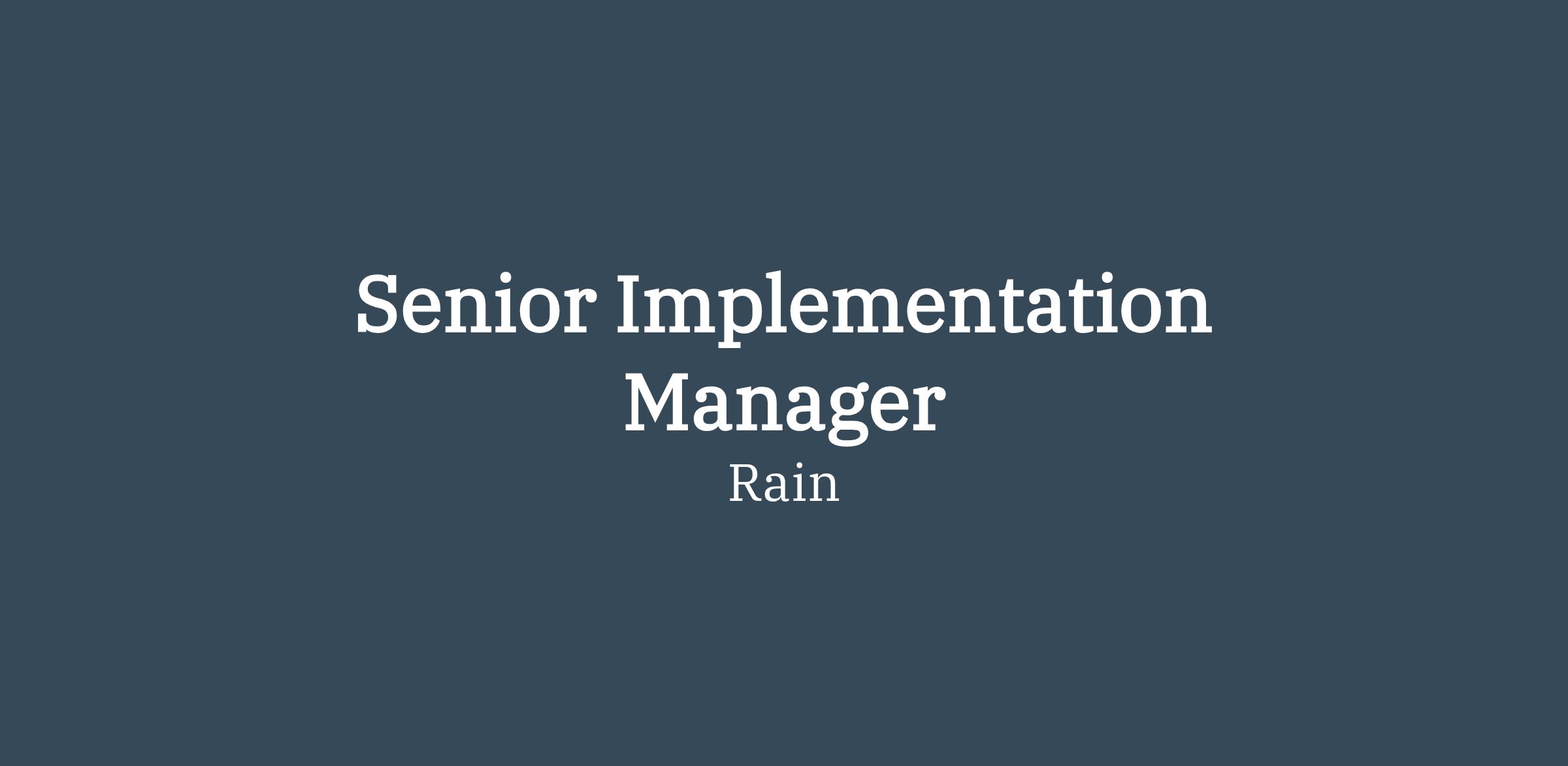 Rain is seeking a detail-oriented, passionate Implementation Manager to join our team. In this role, you will be a key player in integrating enterprise clients, leveling up our onboarding process across our platform, and helping train product analysts. You will work closely with cross-functional teams including operations, compliance, and sales to ensure that our partners have a seamless experience and are fully supported in leveraging our offerings.