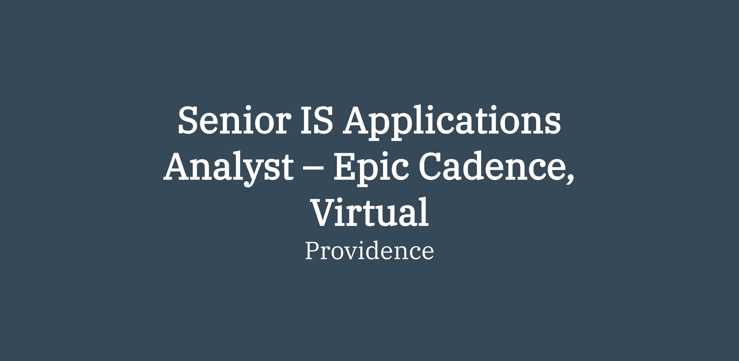 As a Senior IS Epic Applications Analyst on the Cadence team at Providence, you’ll be the trusted expert driving innovative solutions for complex business challenges. In this role, you’ll leverage deep technical knowledge and analytical skills to advise leadership, define user requirements, and translate business needs into optimized system designs. You’ll collaborate across teams and with customers to ensure applications are used effectively, while mentoring others and leading projects that enhance workflows and improve outcomes. You will foster a culture built on respect, excellence, and compassion—ensuring every interaction demonstrates integrity and fairness, while your daily work uplifts colleagues, customers, and the community. From troubleshooting critical issues to managing upgrades and change initiatives, you’ll play a key role in delivering service excellence and maintaining system integrity. If you thrive in a dynamic environment where your expertise shapes impactful solutions and strengthens collaboration, this is the opportunity to make a difference.