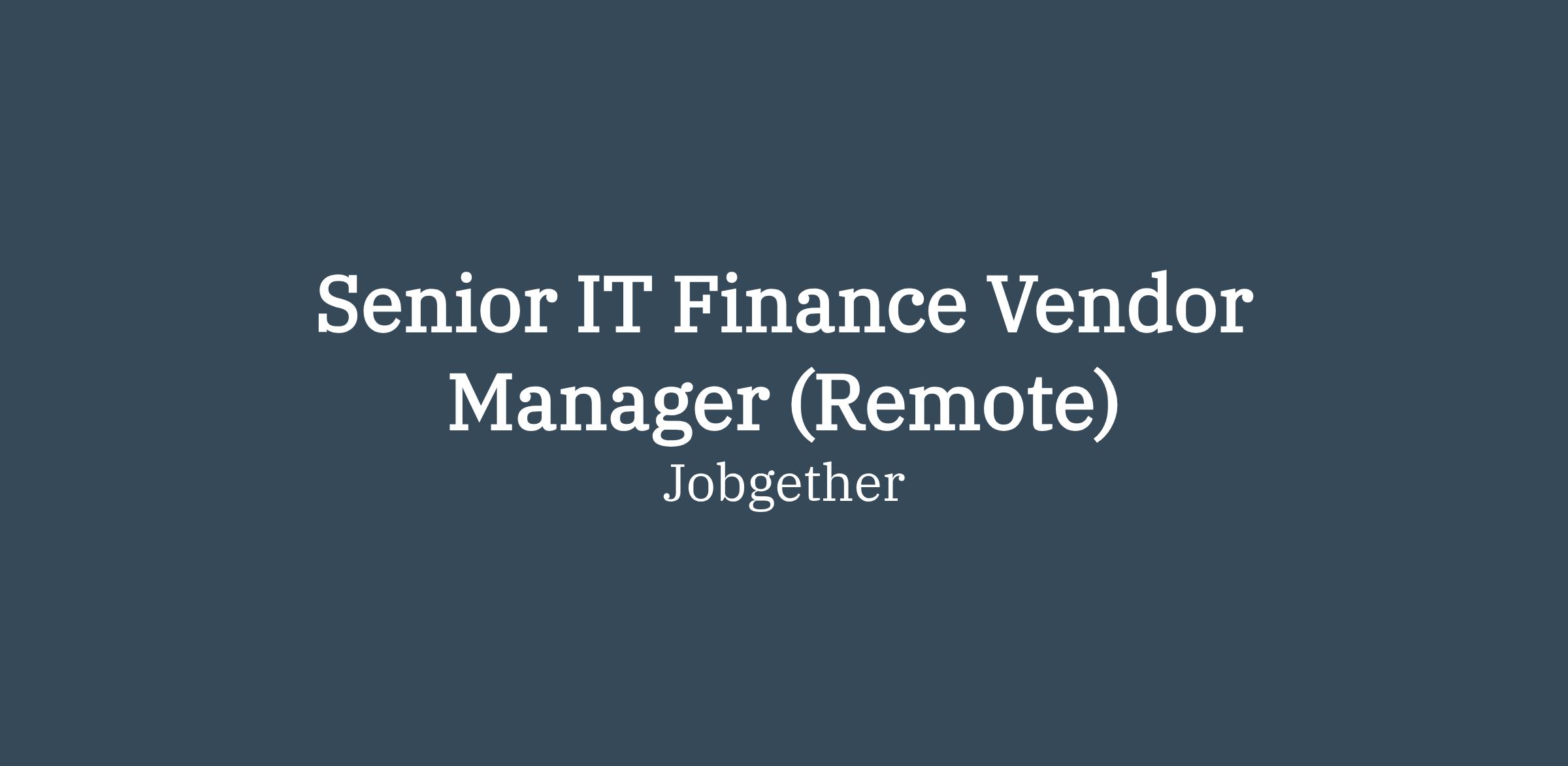 Senior IT Finance Vendor Manager (Remote)