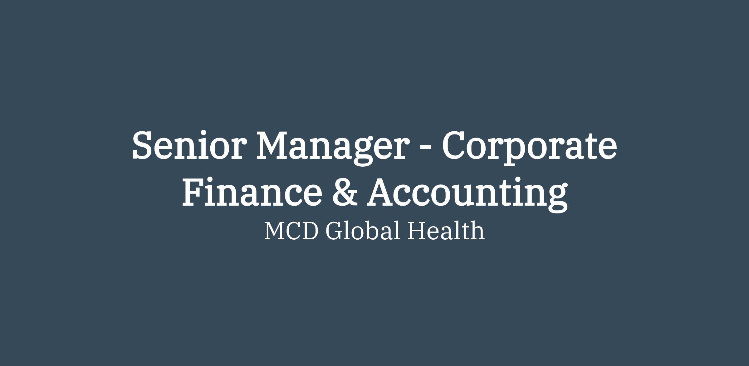 Reporting to the Controller, the Senior Manager - Corporate Finance and Accounting will implement the infrastructure and systems needed to support MCD’s strategic objectives. The Senior Manger is accountable for the oversight and management of corporate finance and accounting, accounts payable, accounts receivable, payroll, corporate insurance, annual audit, budget, treasury, and physical infrastructure. As a member of the senior financial management team, the Senior Manager will be involved in a range of strategic planning and internal initiatives. They will partner closely with the Controller and the senior management team in the development of MCD’s financial strategic goals. They will continually evaluate best industry practices in comparison to internal systems and needed resources, with an eye toward both future needs and budget realities. The Senior Manager - Corporate Finance and Accounting will serve as second in command to the Controller and serve as Controller in their absence. This position will have direct management responsibility for a staff of 2-3, which includes, at a minimum, the Manager of Corporate Finance and Accounting and the Manager of Payroll.