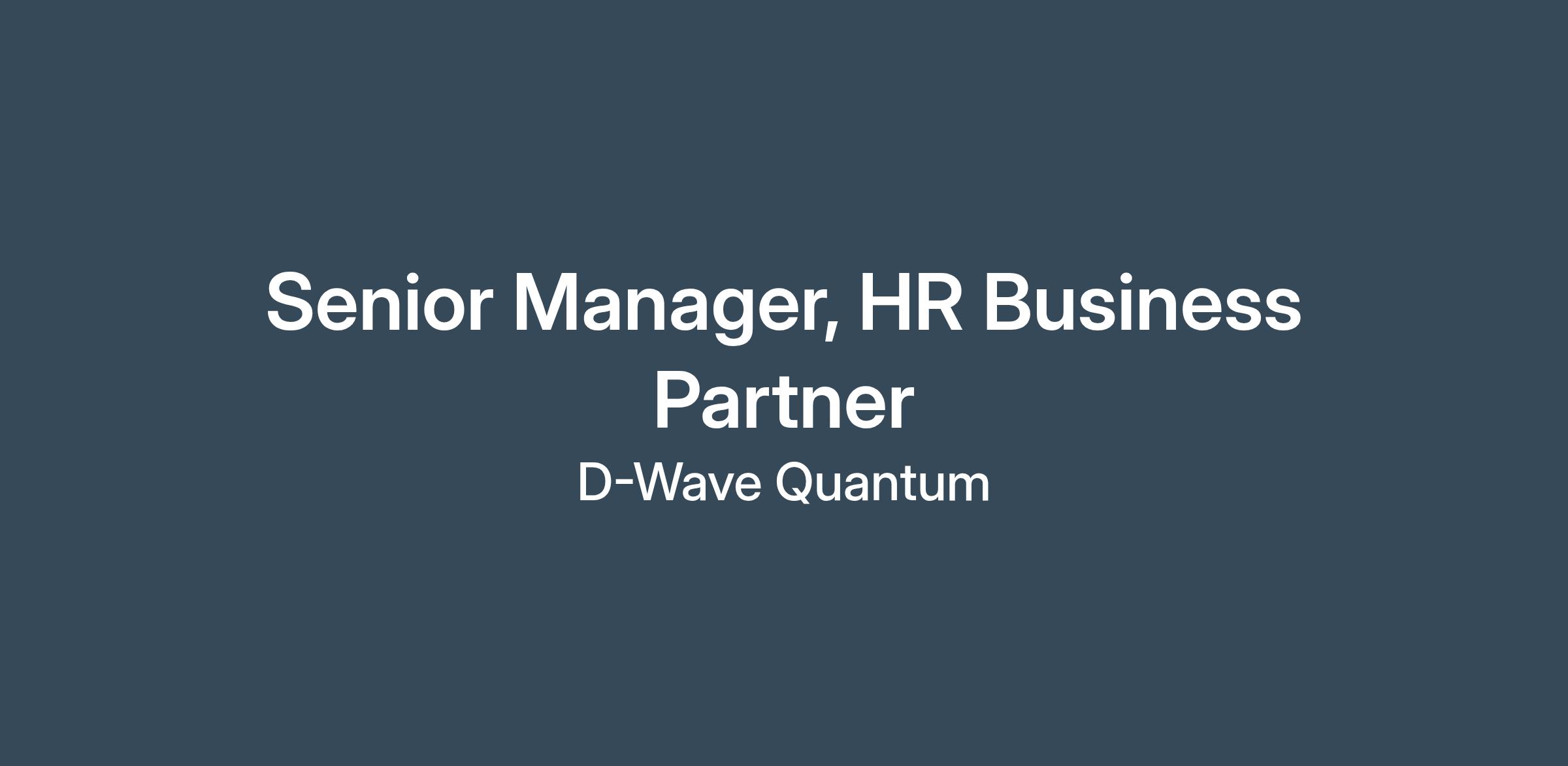 D-Wave is seeking a Senior Manager, HR Business Partner to support highly technical, fast-moving organizations across the business.