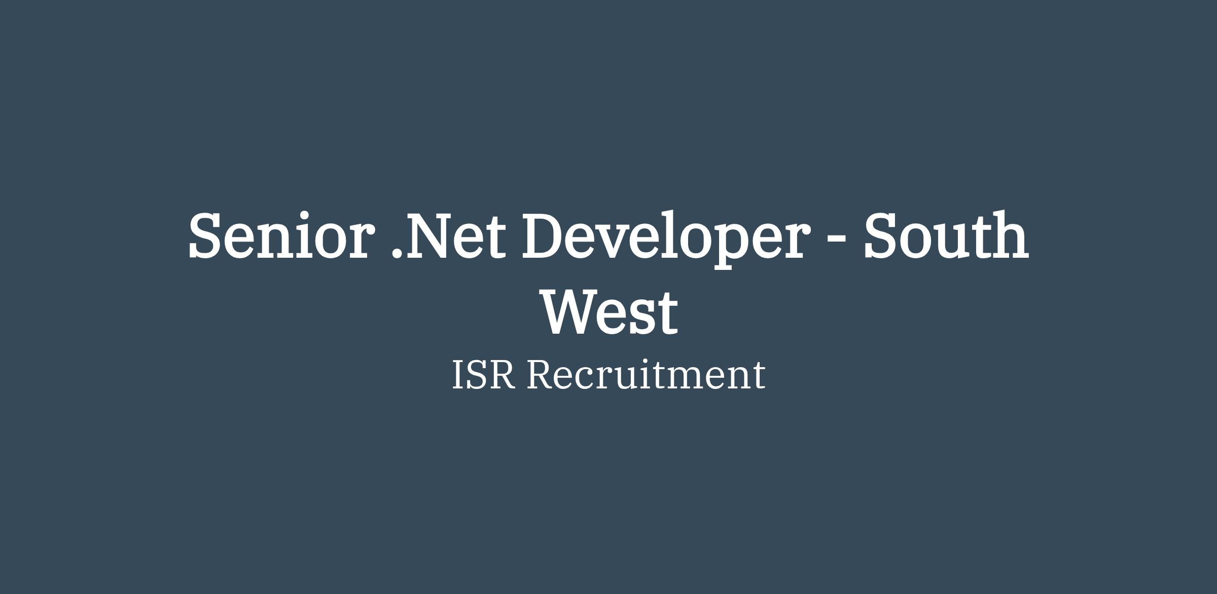 To learn more about our client and this great opportunity on offer working as a Senior .NET Developer based in Devon, please call and speak with John Noonan here at ISR Recruitment on 07719 919 860 or please email me a copy of your very latest CV (john@isr.uk.com) and I’ll call you back to discuss the role in more detail.