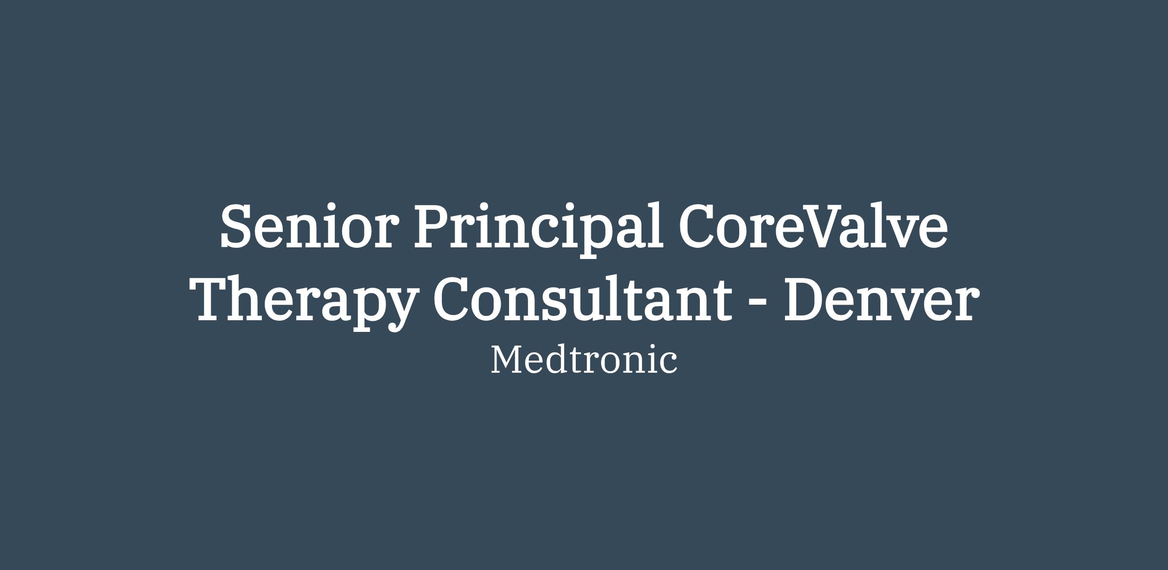 The Senior Principal CoreValve Therapy Consultant (Sales Representative) achieves sales revenue targets and grows market share for a specified geography by promoting, selling and servicing Medtronic CoreValve and related products, post approval, while ensuring safe adoption and growth. The CoreValve Sales Representative 3 practices good territory management with strong organization, administration and expense planning and control. The CoreValve Representative is a partner and resource to the CVG field organization and to Catheter Based Therapies (CBT) cross functional teams, including Medical Education, Marketing, Research, and Development.
