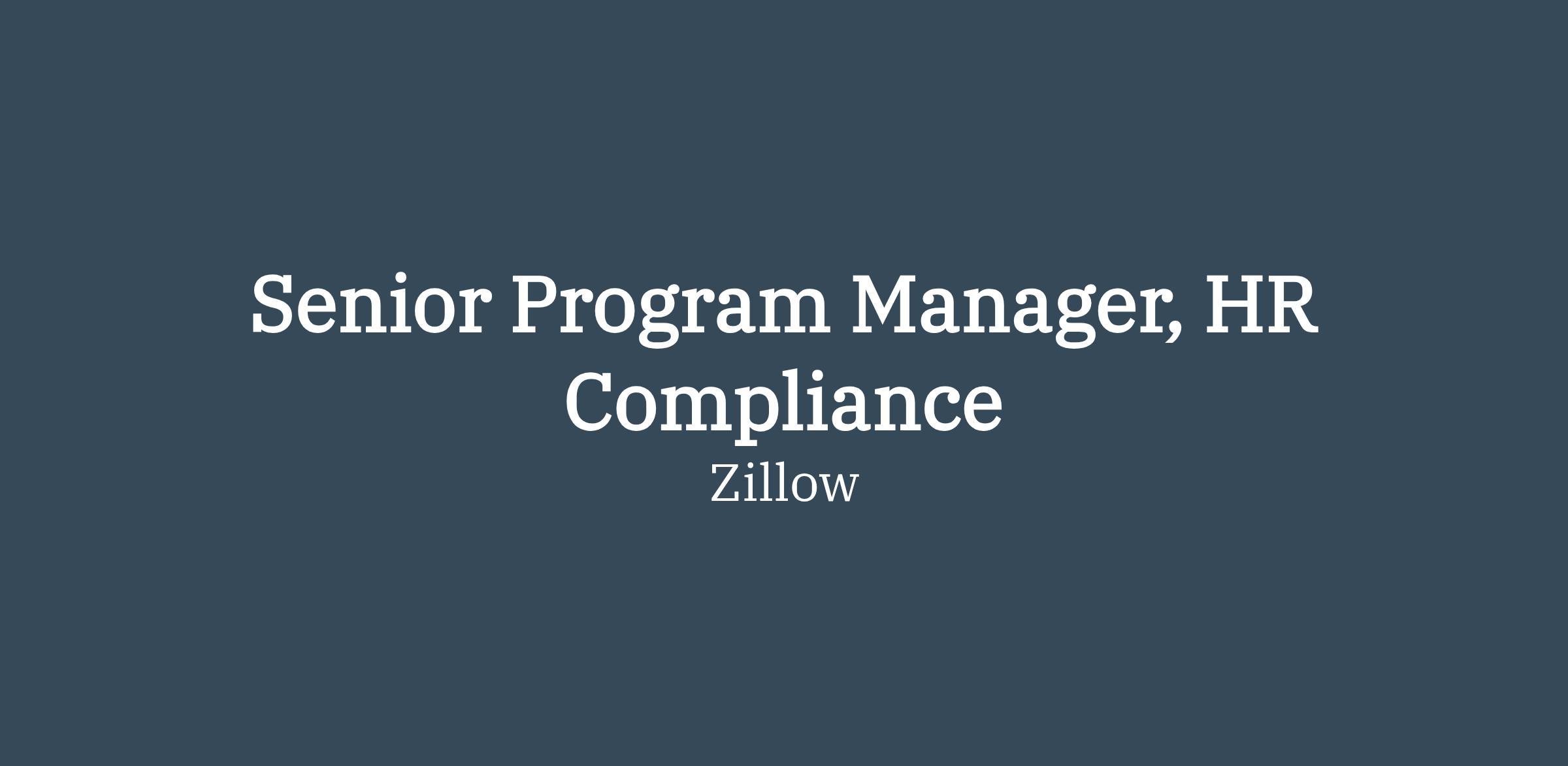 The Senior Program Manager, HR Compliance is a strategic and hands-on leader responsible for building, leading, and continuously evolving Zillow’s HR compliance programs globally. This role ensures that HR policies, systems, and practices align with applicable federal, state, local, and international employment laws, while supporting Zillow’s broader risk, compliance, and people strategy. You’ll proactively identify risk, prioritize initiatives, and deliver solutions that embed compliance into the employee lifecycle while supporting Zillow’s broader people and enterprise risk strategies.