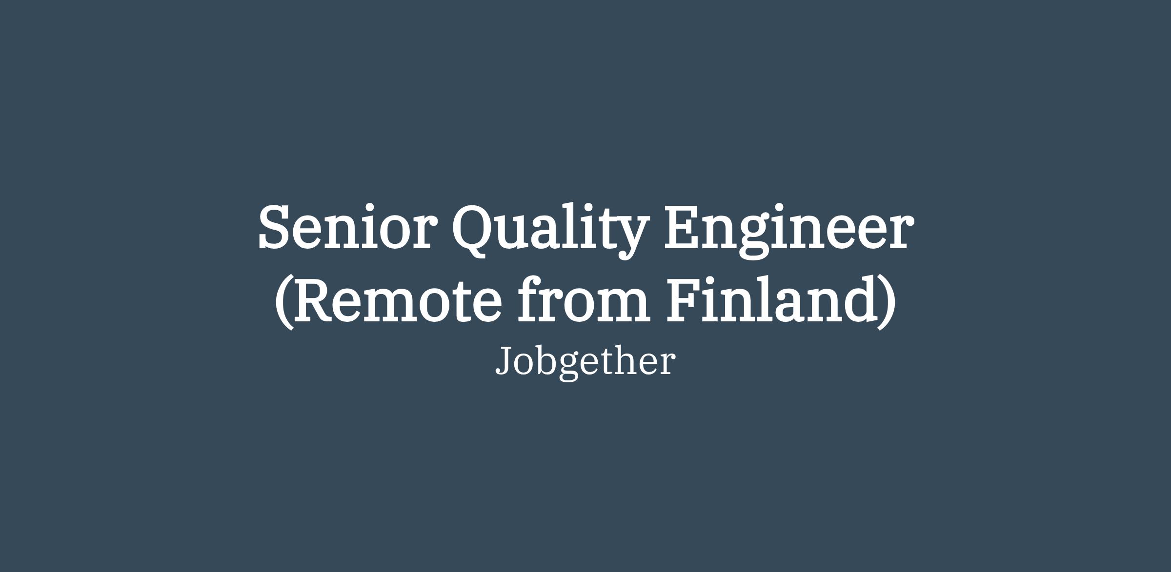 This position is posted by Jobgether on behalf of a partner company. We are currently looking for a Senior Quality Engineer in Finland.